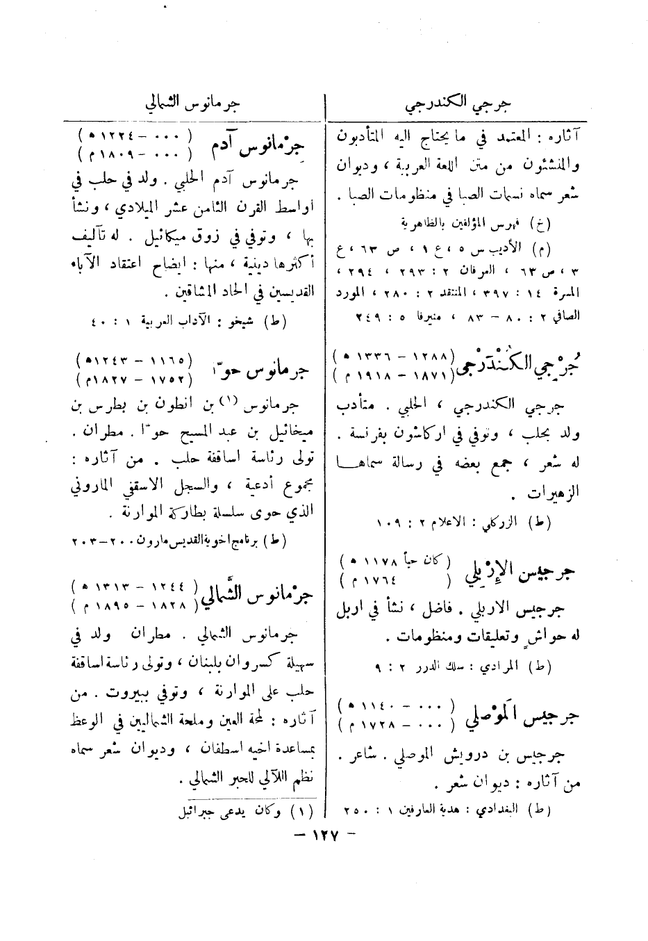 (ط) البغدادي: هدية العارفين 1: 250 جرمانوس آدم (000 - 1224 هـ) (000 - 1809 م) جرمانوس آدم الحلبي.