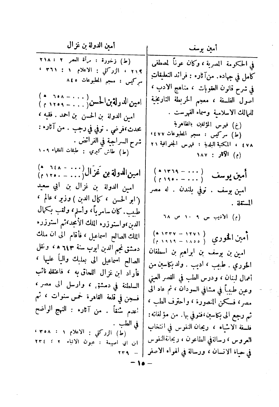 (ط) طاش كبري: طبقات الفقهاء 109 امين الدولة بن غزال (000 - 648 هـ) (000 - 1250 م) امين الدولة بن غزال بن ابي سعيد (أبو الحسن، كمال الدين) وزير، عالم، طبيب.