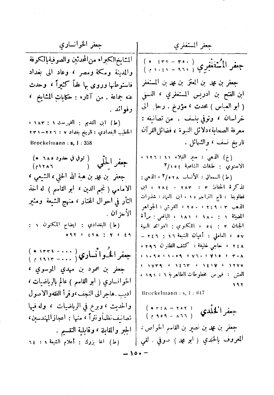 617: Brockelmann: s , I جعفر الخلدي (252 - 348 هـ) (866 - 959 م) جعفر بن محمد بن نصير بن القاسم الخواص، المعروف بالخلدي (أبو محمد) صوفي.