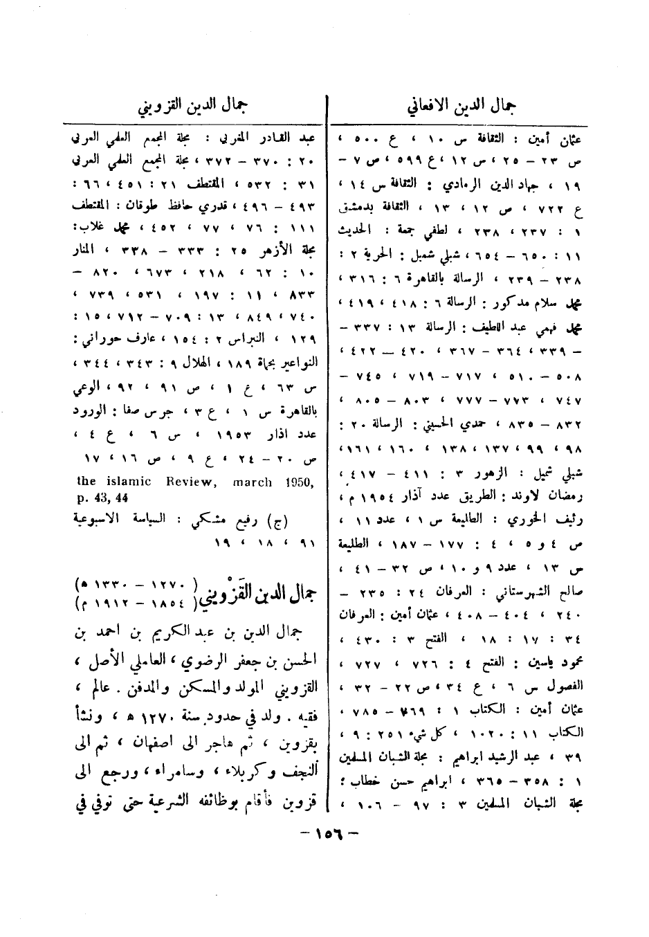 91، 18، 19 جمال الدين القزويني (1270 - 1330 هـ) (1854 - 1912 م) جمال الدين بن عبد الكريم بن احمد بن الحسن بن حعفر الرضوي، العاملي الاصل، القزويني المولد والمسكن والمدفن.