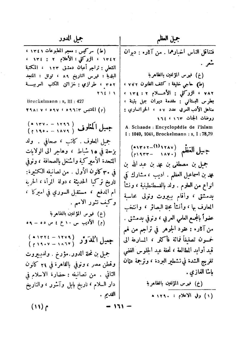 Schaade: Encyclopedie de l ' islam 79 , 78: I: 0401 , 1401 , Brockelmann: s , I جميل العظم (1287 (1) - 1352 هـ) (1870 - 1933 م) جميل بن مصطفى بن محمد بن عبد الله بن محمد بن اسماعيل العظم.