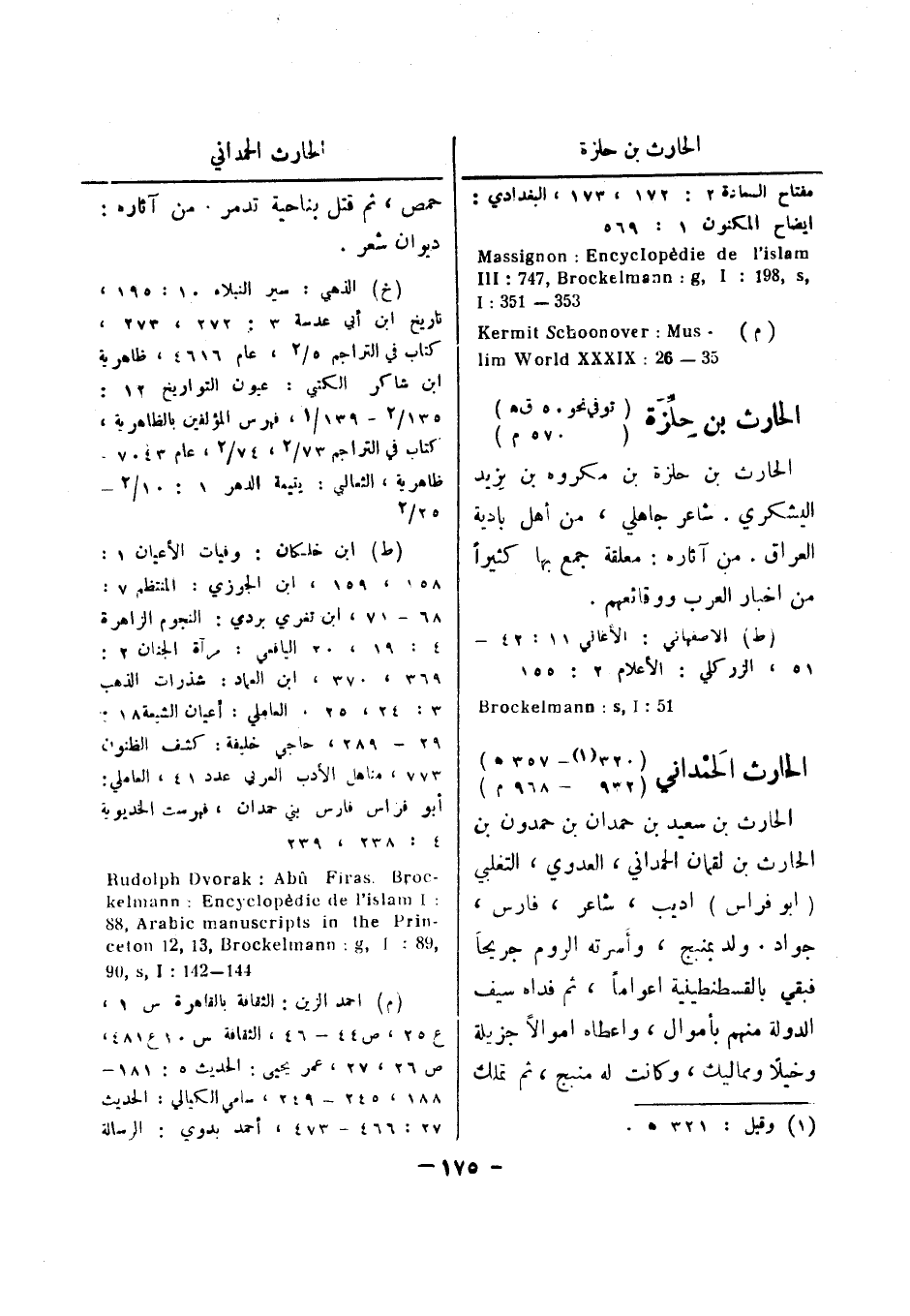 ايضاح المكنون 1: 569 Massignon: Encyclopedie de l ' islam , III: 747 , Brockelmann: g , I: 891 , s 353 - 351: I - Kermit schoonover: Mus 35 - 26: lim World XXXIX الحارث بن حلزة (توفي نحو 50 ق هـ) (570 م) الحارث بن حلزة بن مكروه بن يزيد اليشكري.