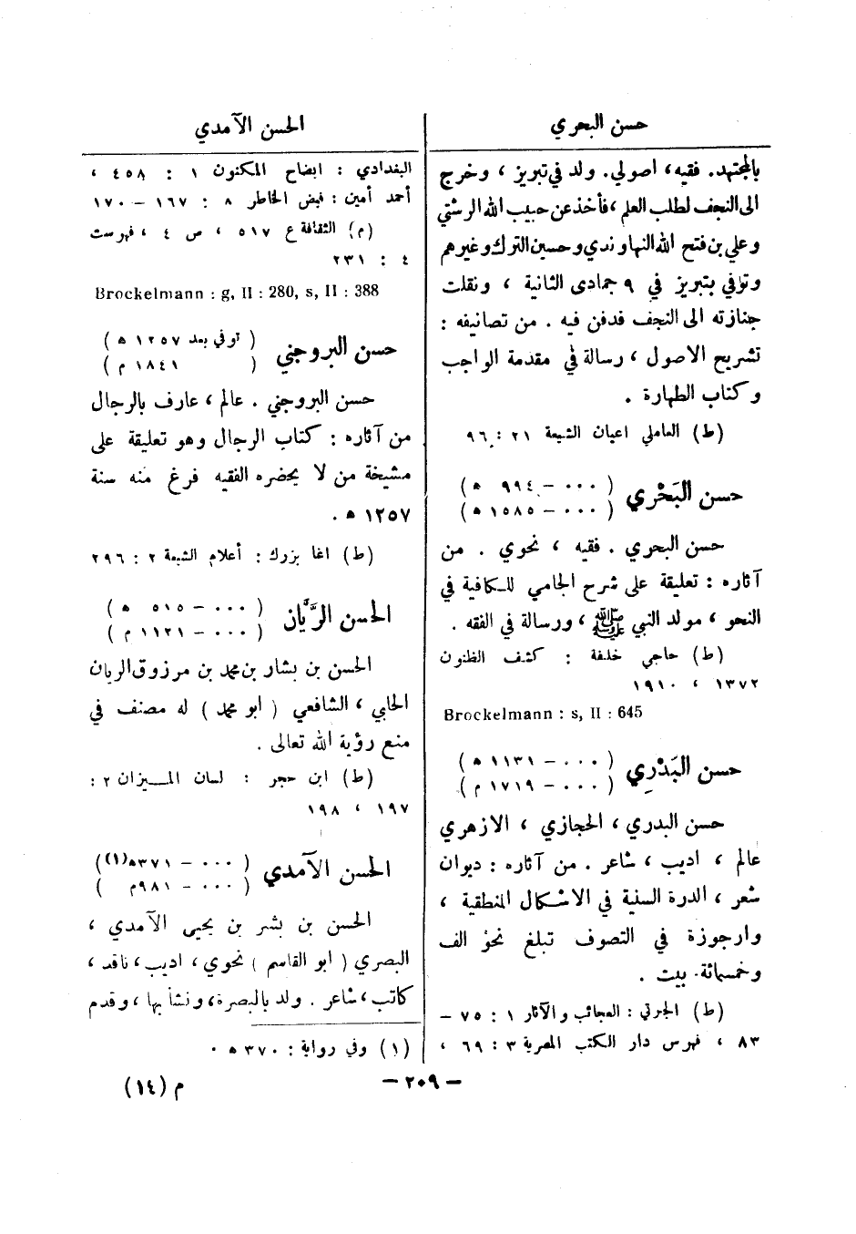 (م) الثقافة ع 517، ص 4، فهرست 4: 231 388: Brockelmann: g , II: 082 , s , II حسن البروجني (توفي بعد 1257 هـ) (1841 م) حسن البروجني.