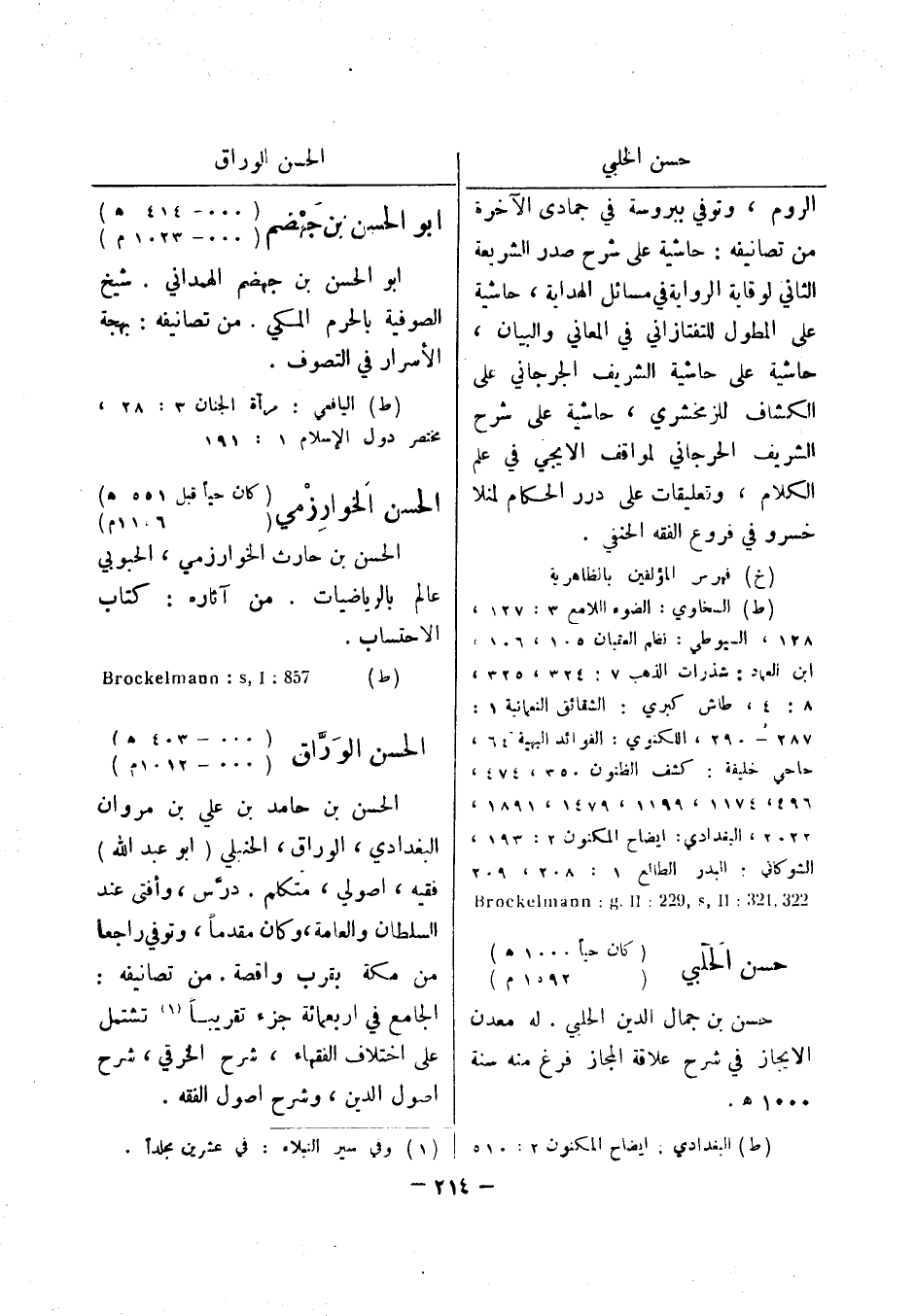 2022، البغدادي: ايضاح المكنون 2: 193، الشوكاني: البدر الطالع 1: 208، 209 322 , 321: Brockelmann: g , II: 922 , s , II حسن الحلبي (كان حيا 1000 هـ) (1592؟ م) حسن بن جمال الدين الحلبي.