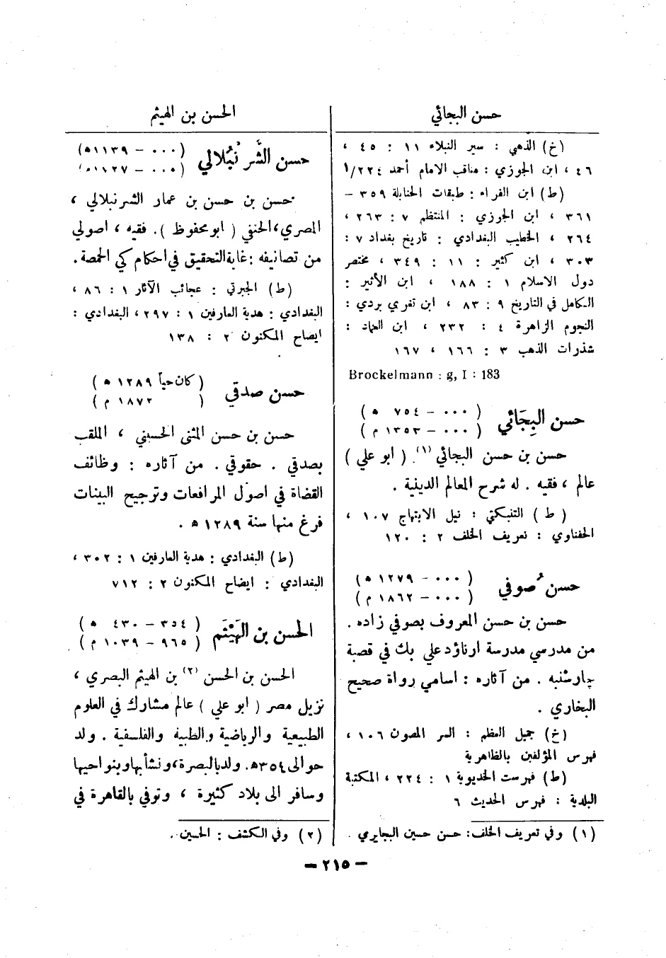 183: Brockelmann: g , I حسن البجائي (000 - 754 هـ) (000 - 1353 م) حسن بن حسن البجائي (1) (أبو علي) عالم، فقيه.