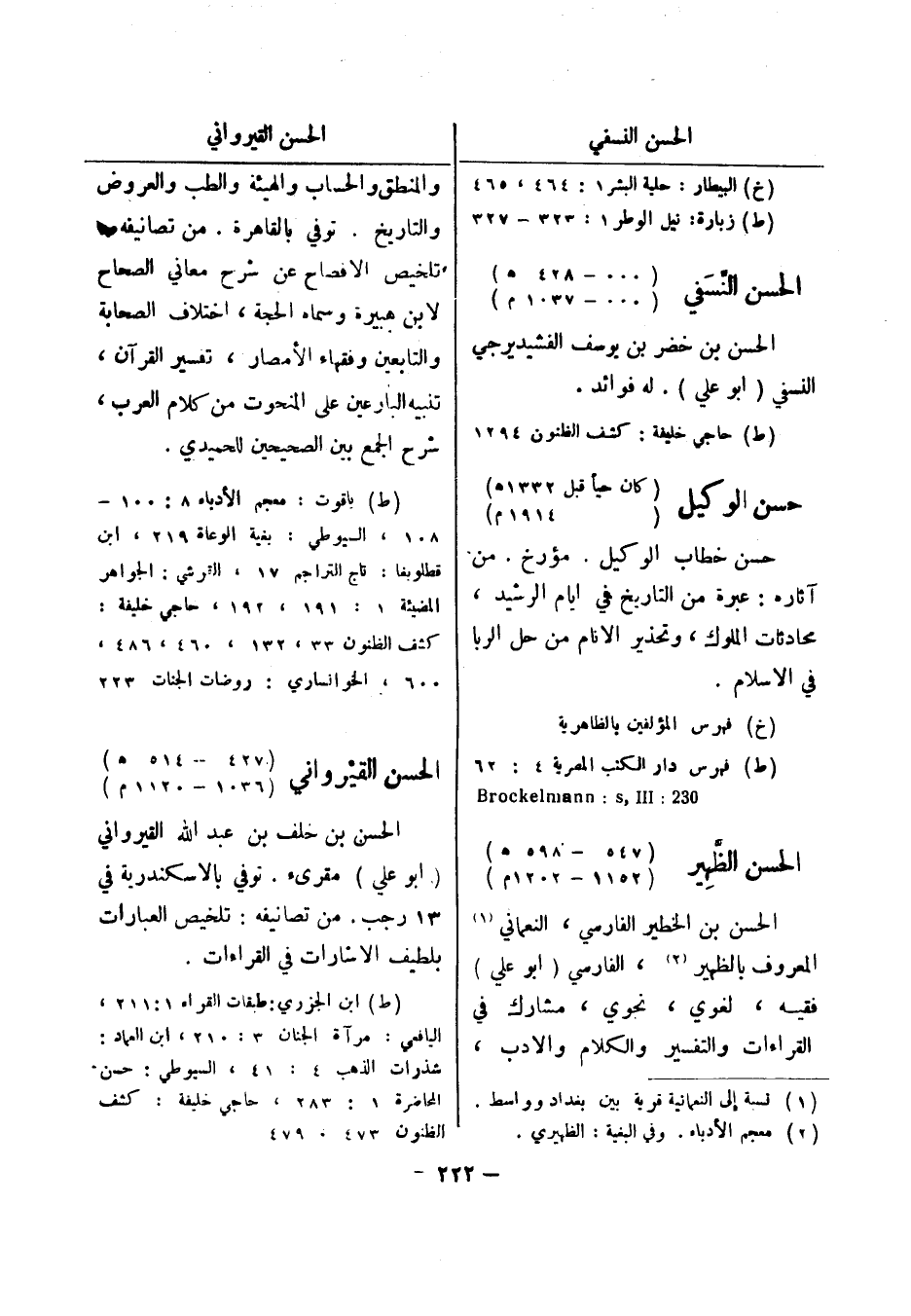 (ط) حاجي خليفه: كشف الظنون 1294 حسن الوكيل (كان حيا قبل 1332 هـ) (1914 م) حسن خطاب الوكيل.