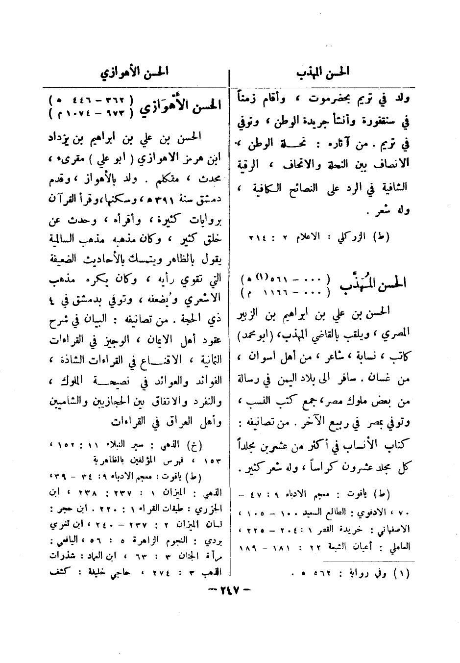 الحسن الاهوازي (362 - 446 هـ) (973 - 1074 م) الحسن بن علي بن ابراهيم بن يزداد ابن هرمز الاهوازي (أبو علي) مقرئ، محدث، متكلم.