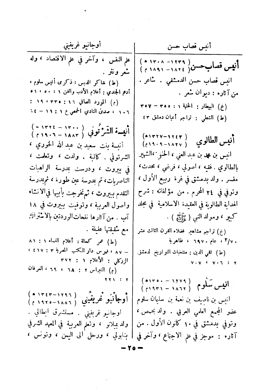 الزركلي: الاعلام 1: 372 (م) النبراس 2: 68، 69، العرفان 2: 221 أوجانيو غريفيني (1296 - 1343 هـ) (1886 - 1925 م) اوجانيو غريفيني.