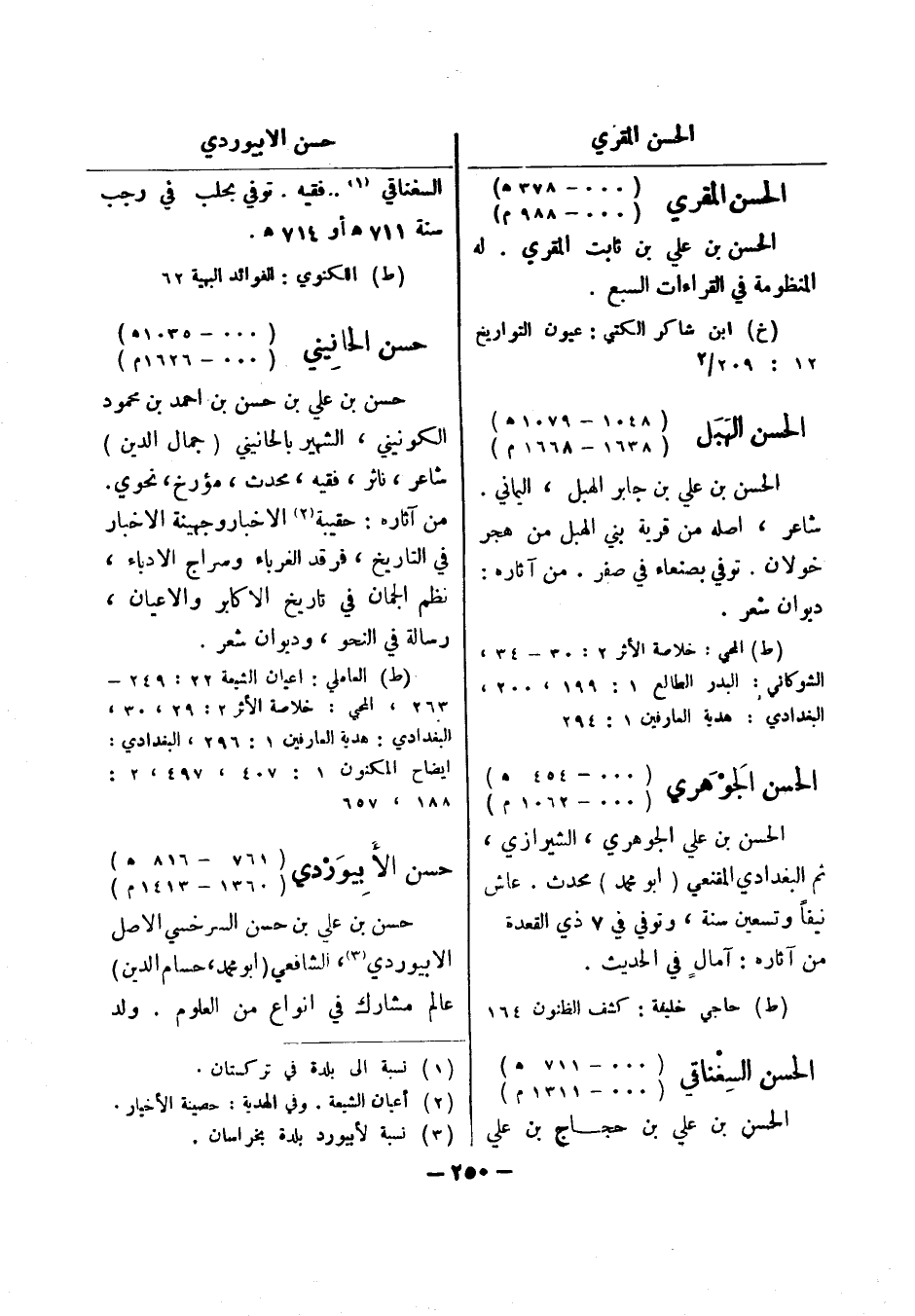 (ط) حاجي خليفة: كشف الظنون 164 الحسن السغناقي (000 - 711 هـ) (000 - 1311 م) الحسن بن علي بن حجاج بن علي السغناقي (1) .