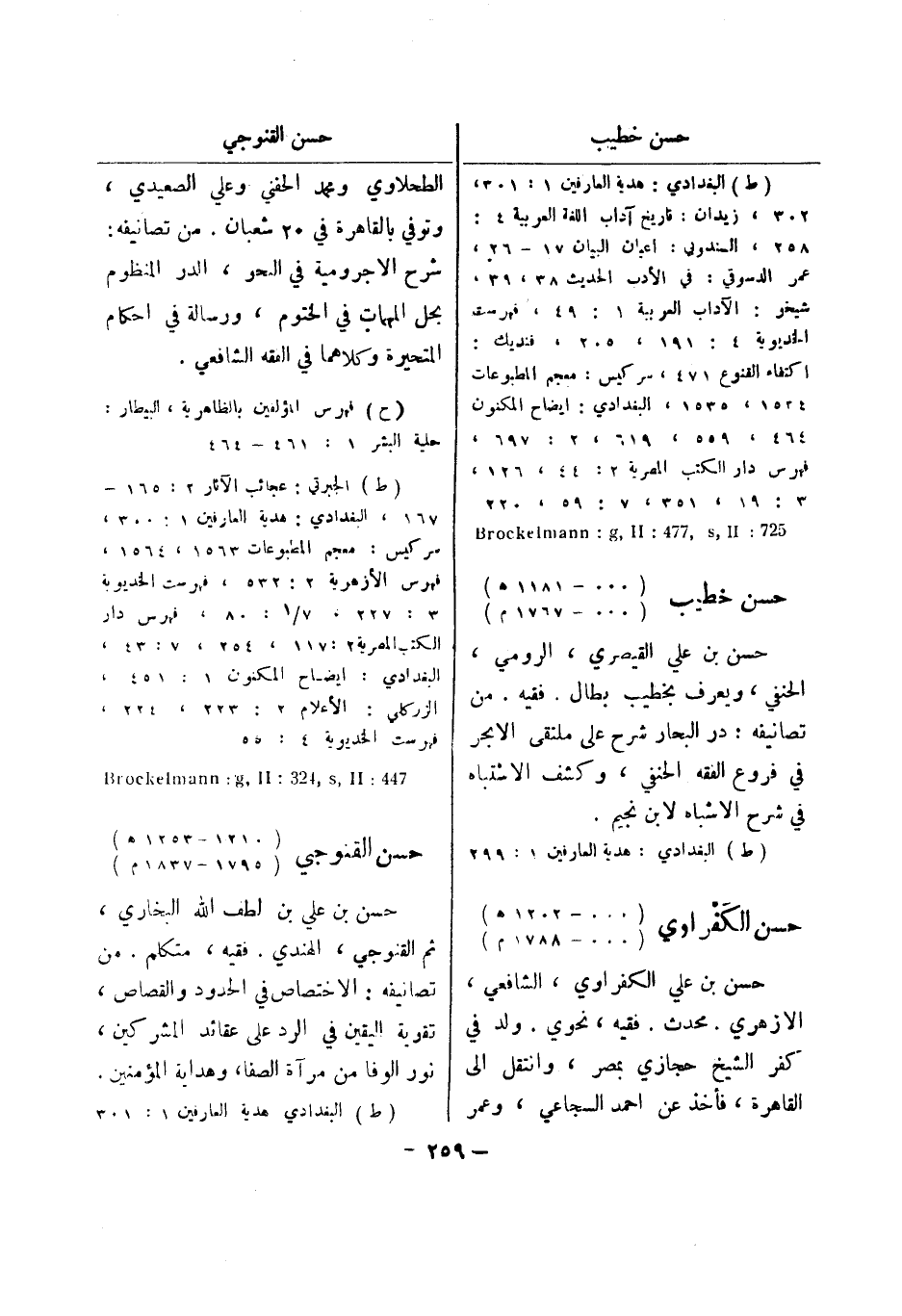 (ط) البغدادي: هدية العارفين 1: 299 حسن الكفراوي (000 - 1202 هـ) (000 - 1788 م) حسن بن علي الكفراوي، الشافعي، الازهري.
