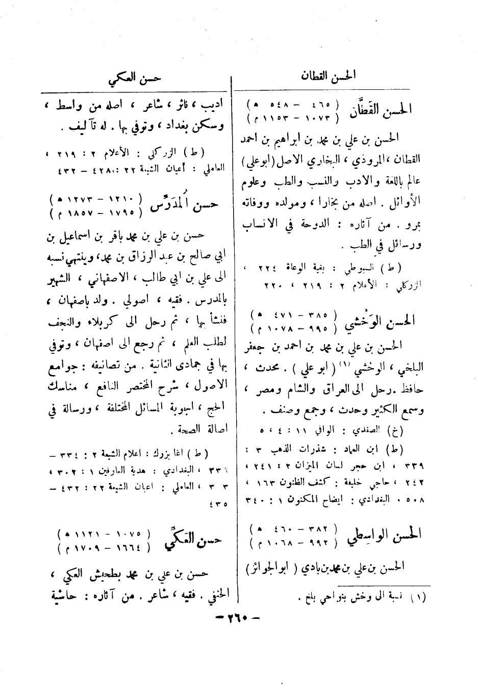 (ط) السيوطي: بغية الوعاة 224، الزركلي: الاعلام 2: 219، 220 الحسن الوخشي (385 - 471 هـ) (995 - 1078 م) الحسن بن علي بن محمد بن احمد بن جعفر البلخي، الوخشي (1) (أبو علي) .