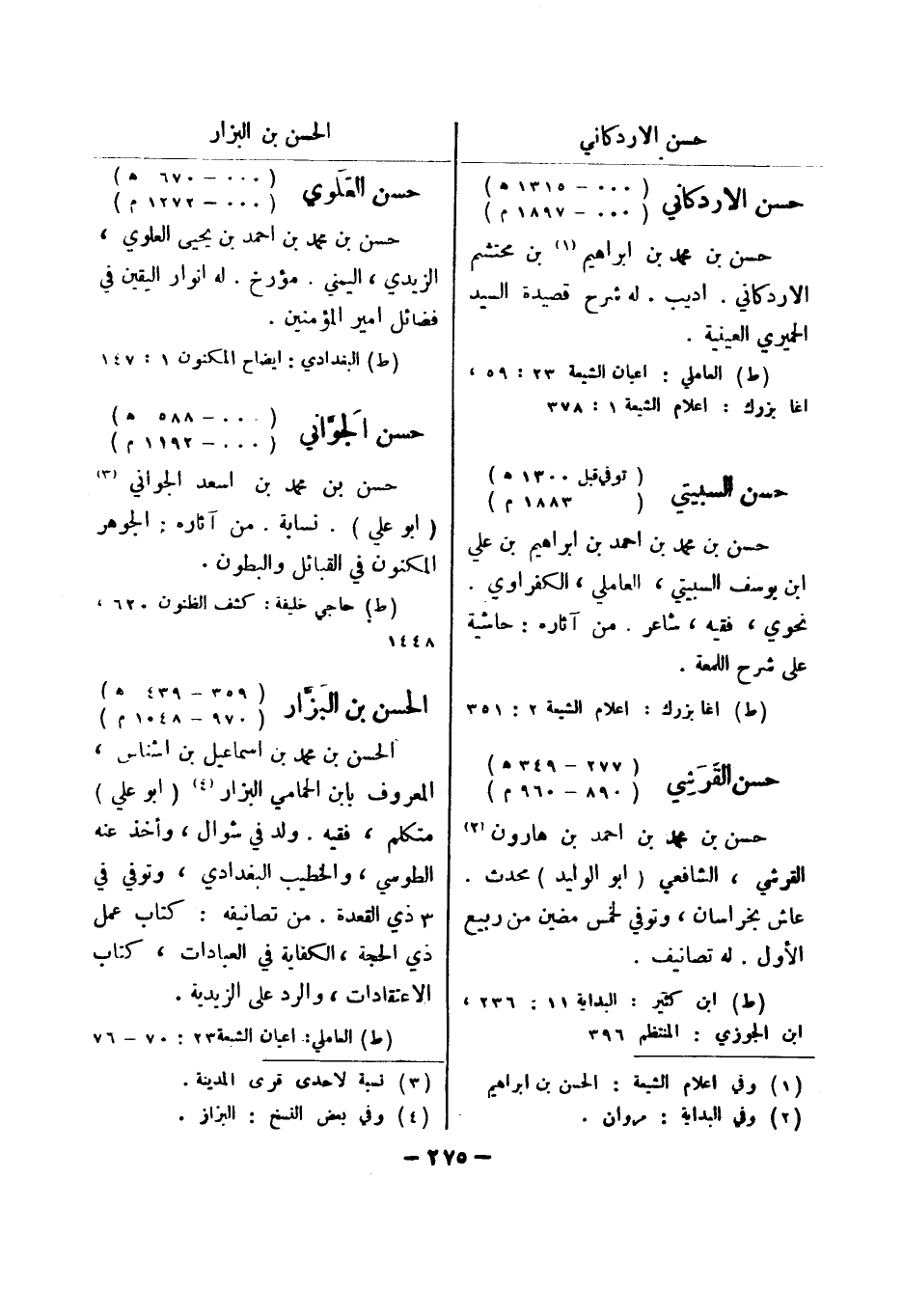(ط) اغا بزرك: اعلام الشيعة 2: 351 حسن القرشي (277 - 349 هـ) (890 - 960 م) حسن بن محمد بن احمد بن هارون (2) القرشي، الشافعي (أبو الوليد) محدث.
