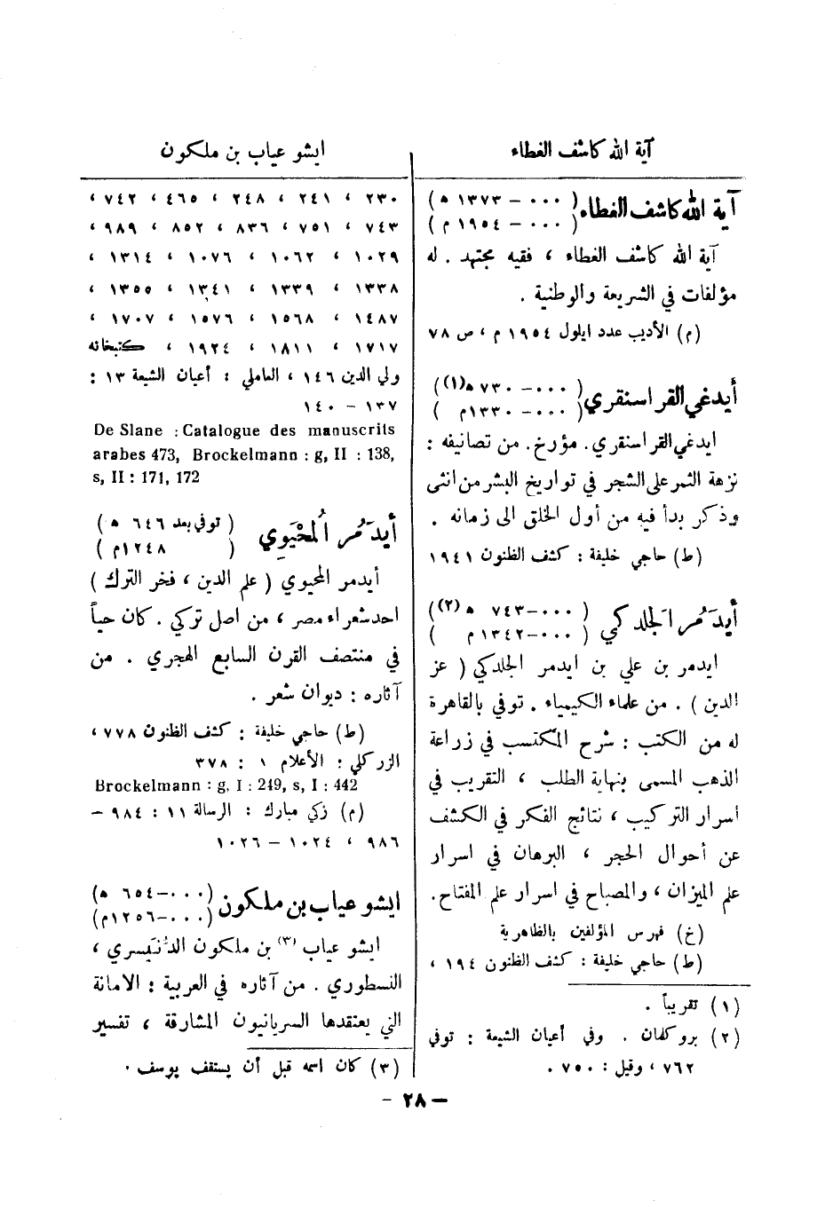 الزركلي: الاعلام 1: 378 442: Brockelmann: g , I: 942 , s , I (م) زكي مبارك: الرسالة 11: 984 - 986، 1024 - 1026 ايشو عياب بن ملكون (000 - 654 هـ) (000 - 1256 م) ايشو عياب (3) بن ملكون الدنيسري، النسطوري.