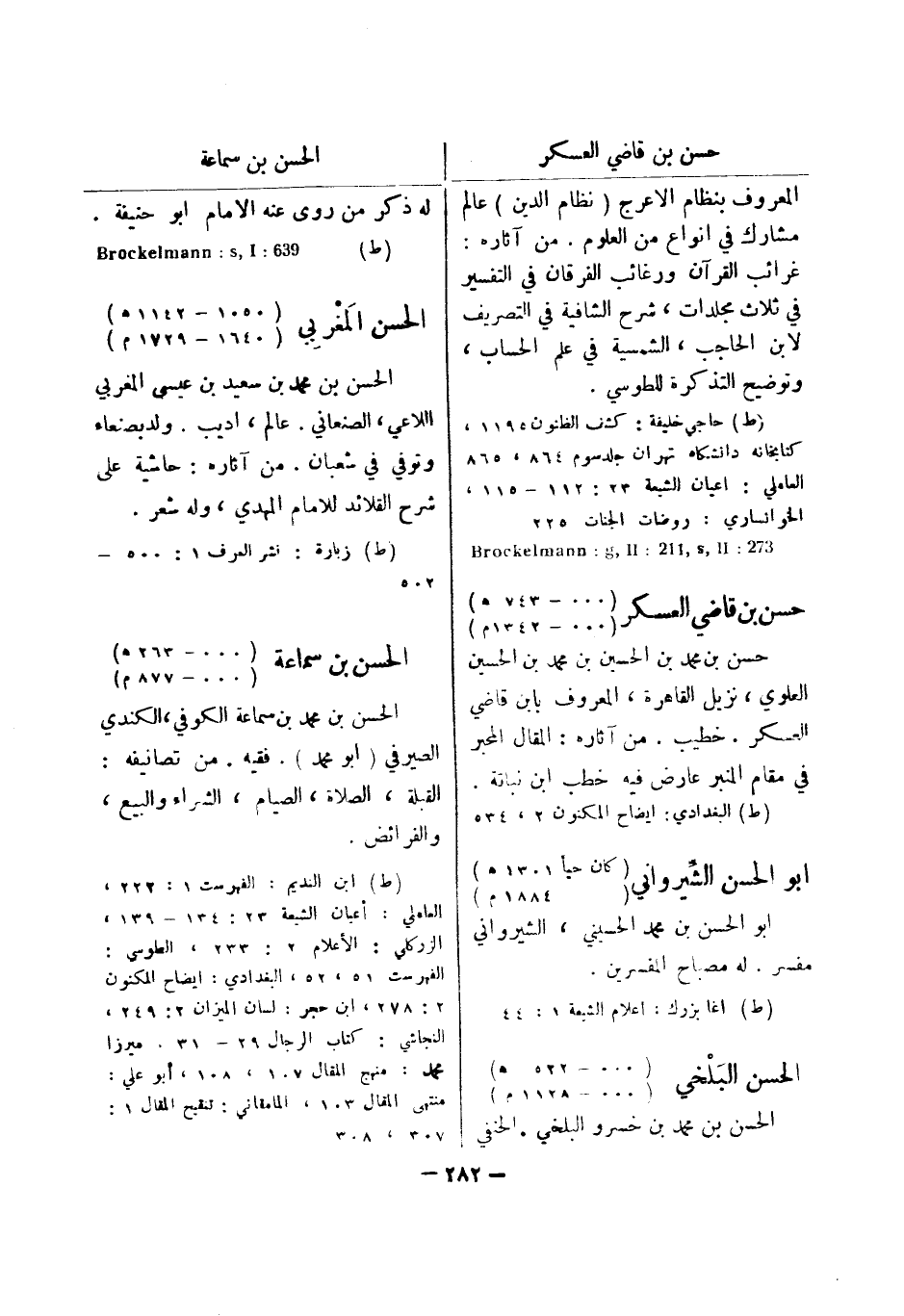 (ط) اغا بزرك: اعلام الشيعة 1: 44 الحسن البلخي (000 - 522 هـ) (000 - 1128 م) الحسن بن محمد بن خسرو البلخي.