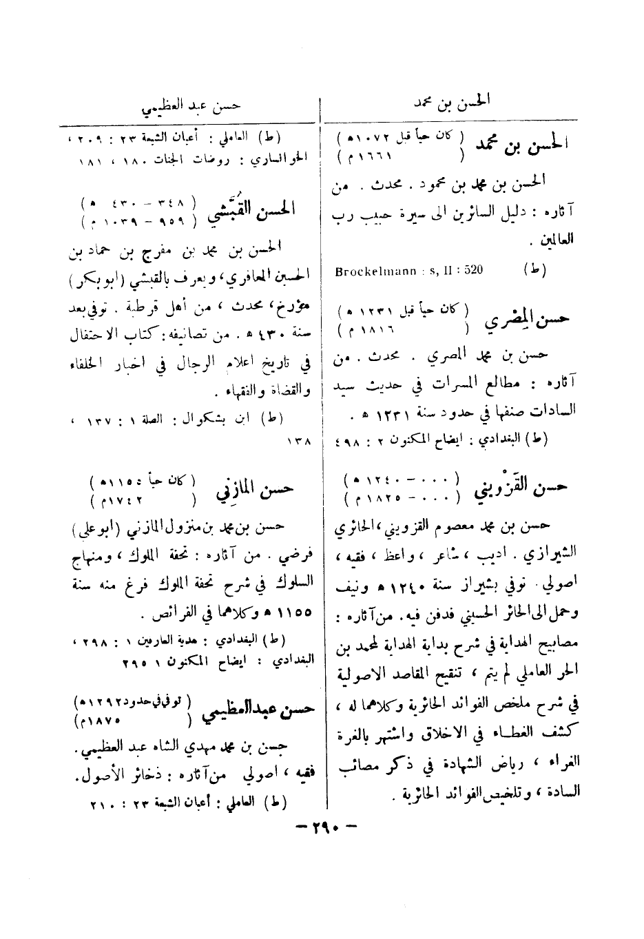 (ط) البغدادي: ايضاح المكنون 2: 498 حسن القزويني (000 - 1240 هـ) (000 - 1825 م) حسن بن محمد معصوم القزويني، الحائري الشيرازي.