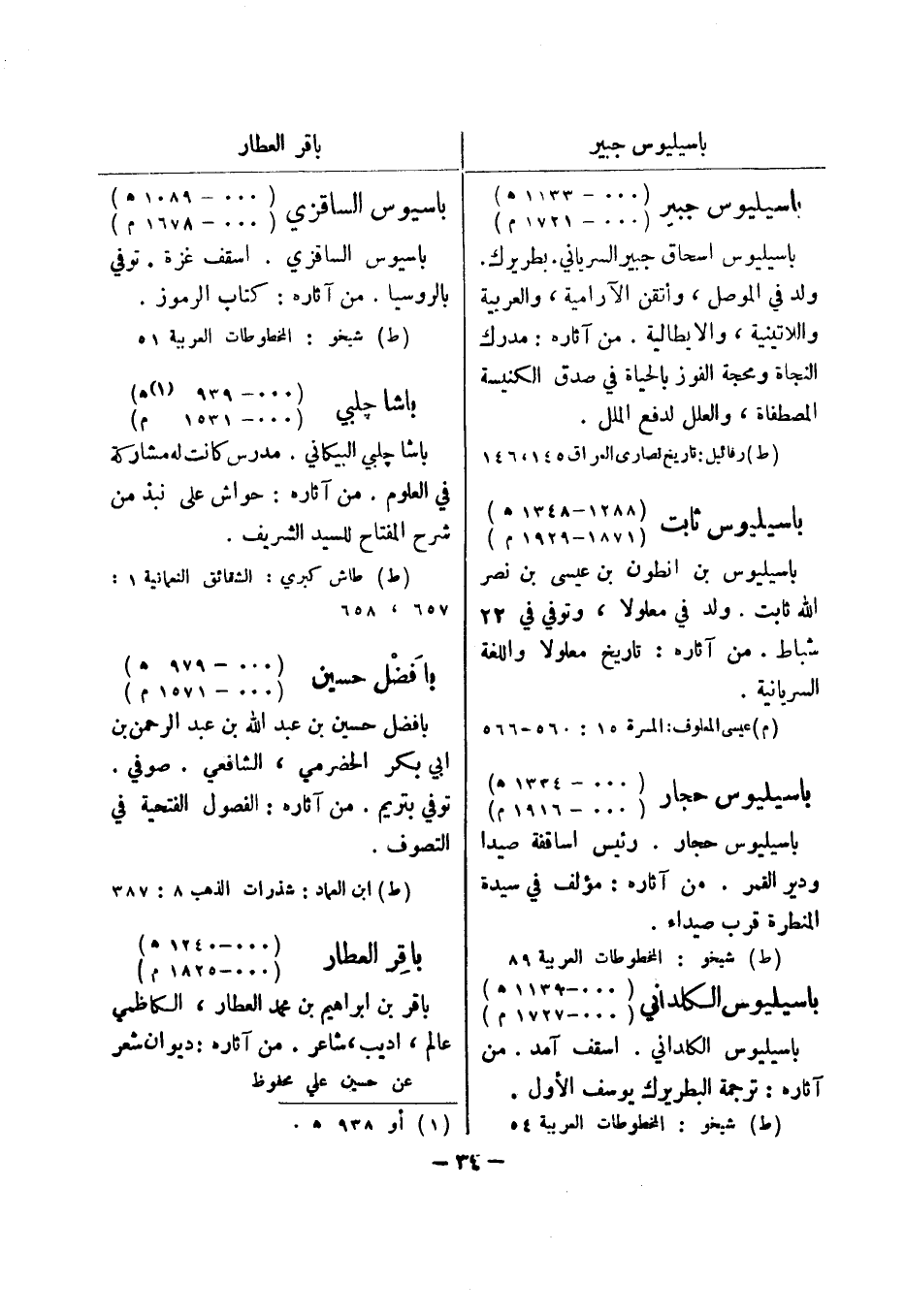 (ط) شيخو: المخطوطات العربية 89 باسيليوس الكلداني (000 - 1139 هـ) (000 - 1727 م) باسيليوس الكلداني.
