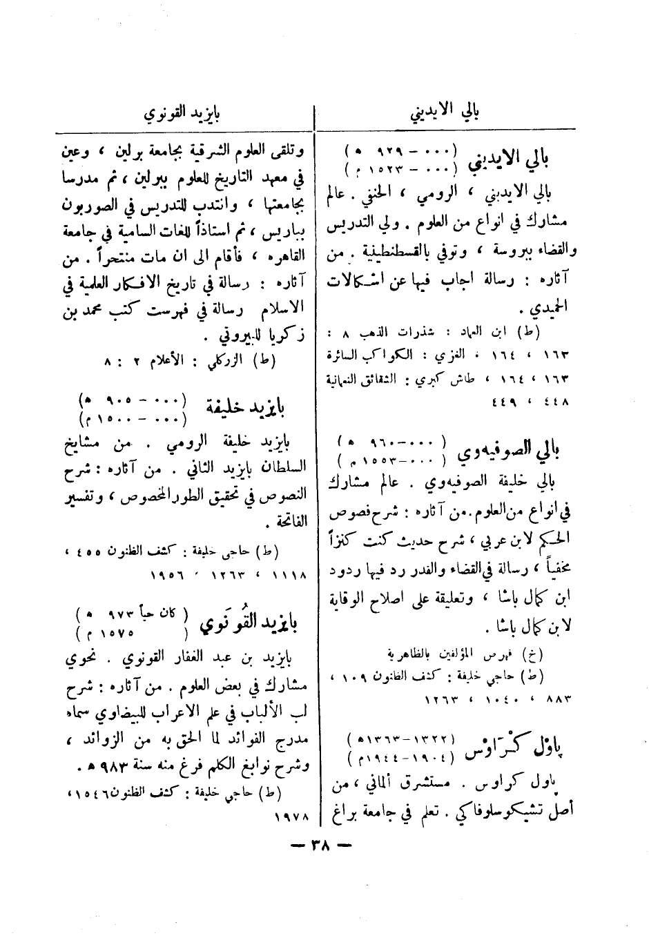 (ط) حاجى خليفة: كشف الظنون 455، 1118، 1263، 1956 بايزيد القونوي (كان حيا 973 هـ) (1575 م) بايزيد بن عبد الغفار القونوي.