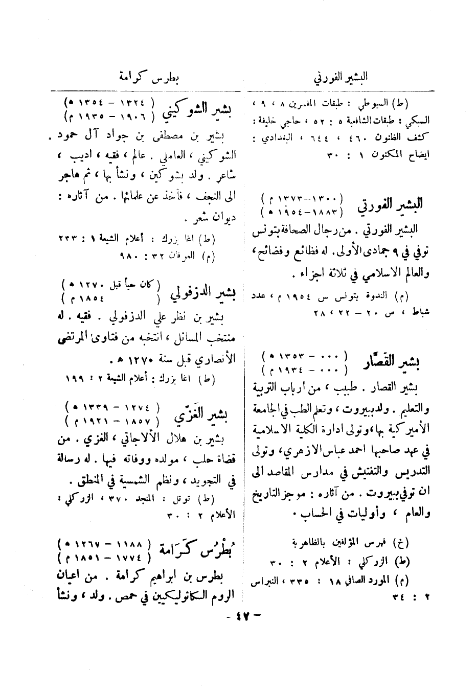 (خ) فهرس المؤلفين بالظاهرية (ط) الزركلي: الاعلام 2: 30 (م) المورد الصافي 18: 335، النبراس 2: 34 بشير الشوكيني (1324 - 1354 هـ) (1906 - 1935 م) بشير بن مصطفى بن جواد آل حمود.