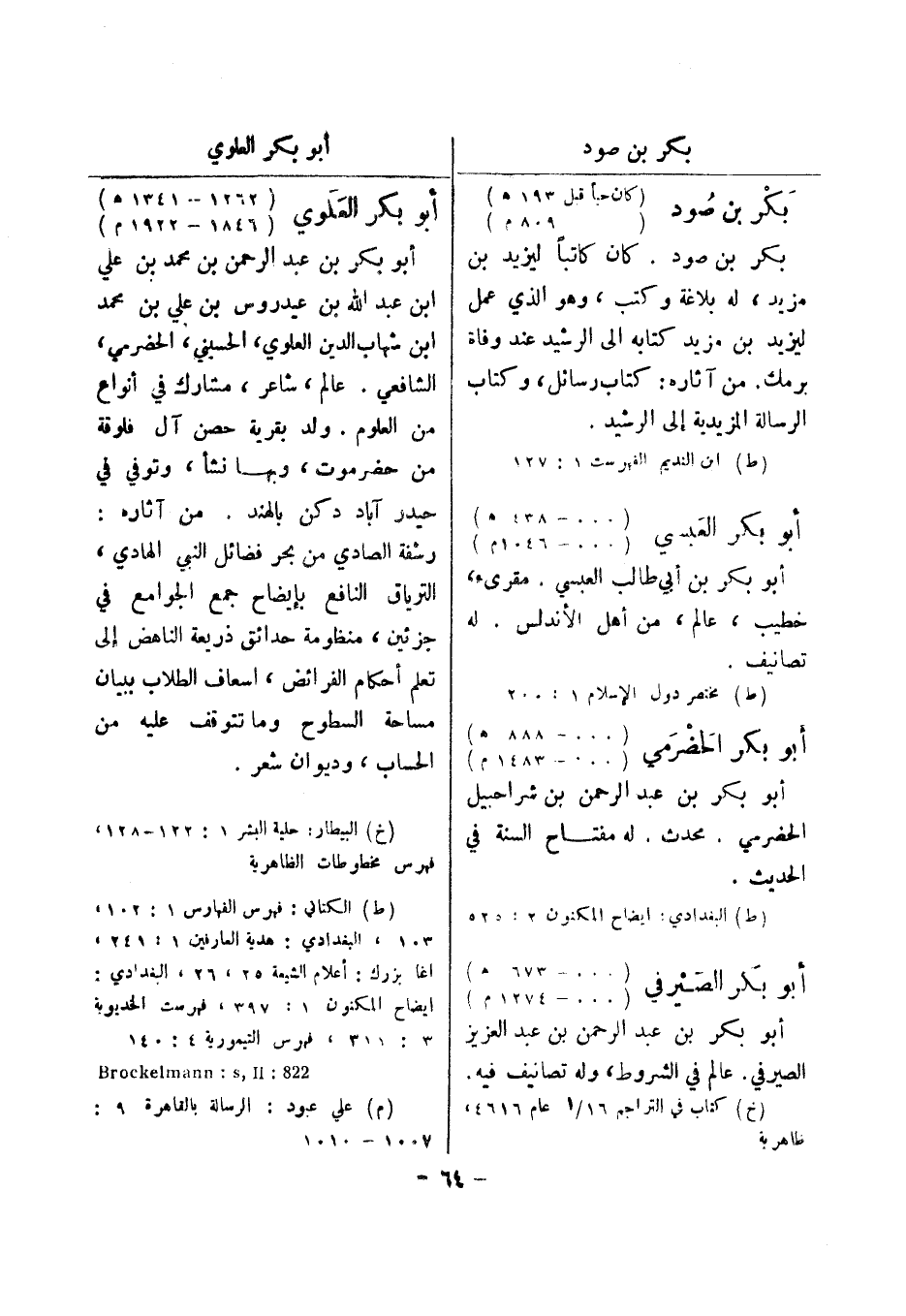 (ط) مختصر دول الاسلام 1: 200 أبو بكر الحضرمي (000 - 888 هـ) (000 - 1483 م) أبو بكر بن عبد الرحمن بن شراحبيل الحضرمي.