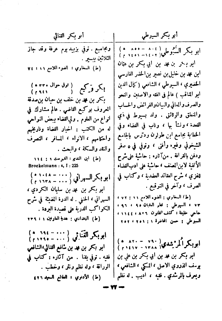(ط) ابن النديم: الفهرست 1: 114 225: Brockelmann: s , I أبو بكر السهراني (000 - 1048 هـ) (000 - 1638 م) أبو بكر بن محمد بن سليمان الكردي، السهراني، الحنفي.