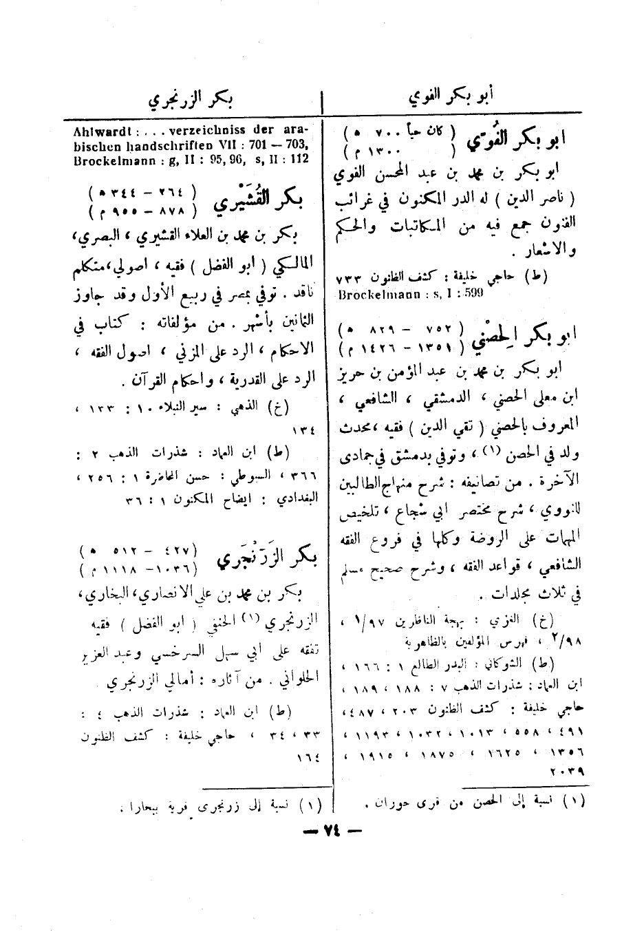 (ط) حاجي خليفة: كشف الظنون 733 599: Brockelmann: s , I أبو بكر الحصني (752 - 829 هـ) (1351 - 1426 م) أبو بكر بن محمد بن عبد المؤمن بن حريز