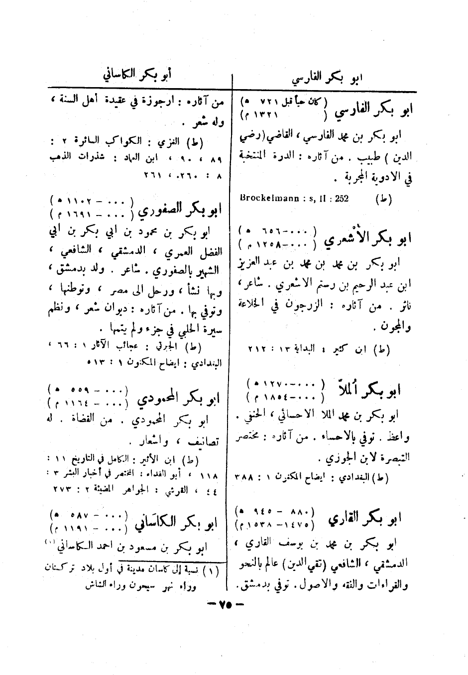118، أبو الفداء: المختصر في أخبار البشر 3: 44، القرشي: الجواهر المضيئة 2: 273 أبو بكر الكاساني (000 - 587 هـ) (000 - 1191 م) أبو بكر بن مسعود بن احمد الكاساني (1)