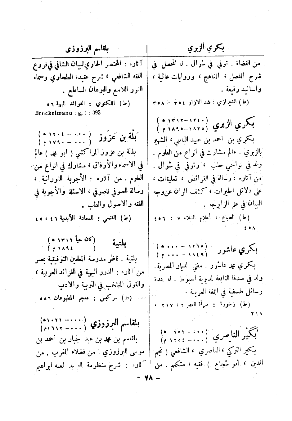 (ط) الشيرازي: شد الازار 354 - 358 بكري الزبري (1240 - 1312 هـ) (1825 - 1895 م) بكري بن احمد بن عبيد البابلي، الشهير بالزبري.