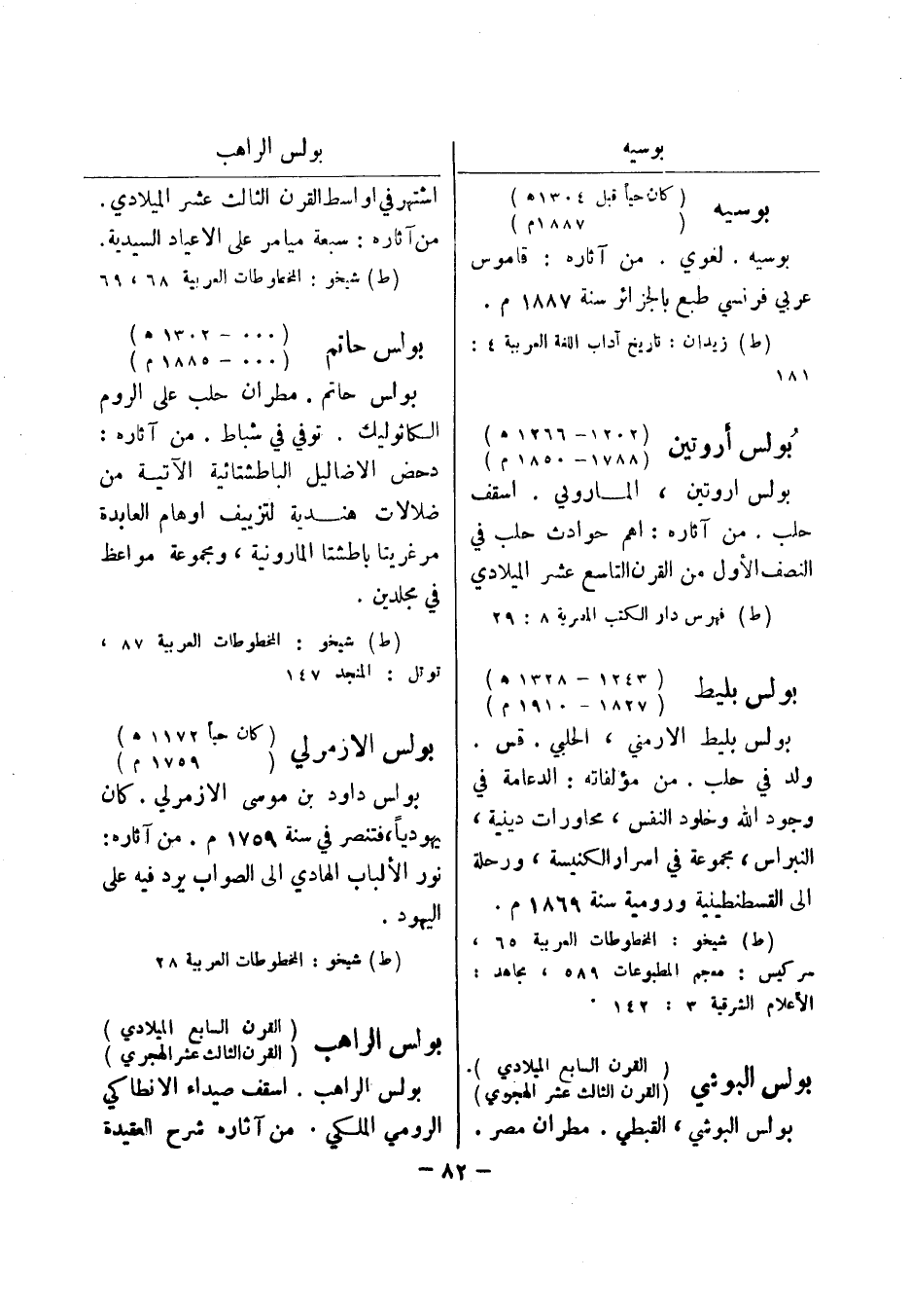 (ط) شيخو: المخطوطات العربية 68، 69 بولس حاتم (000 - 1302 هـ) (000 - 1885 م) بولس حاتم.