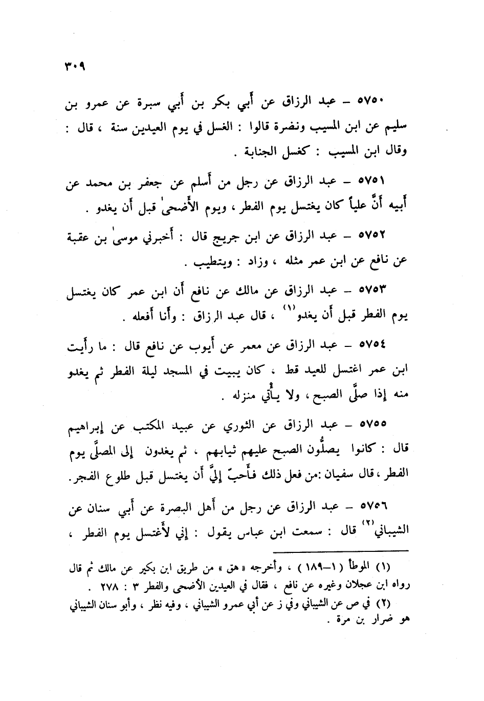 ٥٧٥٣ - عَنْ مَالِكٍ، عَنْ نَافِعٍ، «أَنَّ ابْنَ عُمَرَ، كَانَ يَغْتَسِلُ يَوْمَ الْفِطْرِ قَبْلَ أَنْ يَغْدُوَ». قَالَ عَبْدُ الرَّزَّاقِ: وَأَنَا أَفْعُلُهُ
