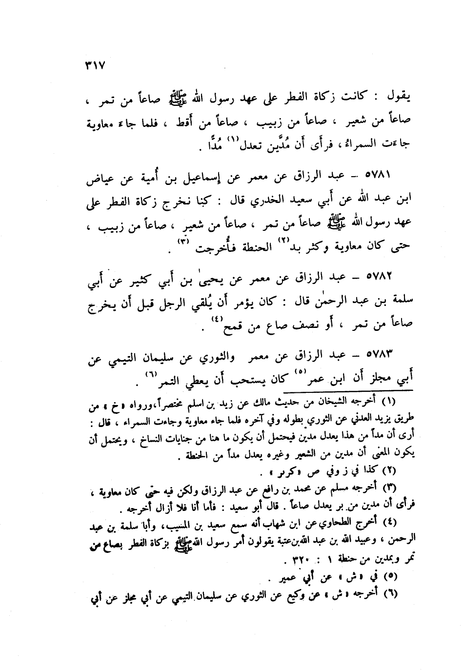 ٥٧٨٤ - عَنْ بَكَّارِ بْنِ عَبْدِ اللَّهِ، عَنْ خَلَّادِ بْنِ عَبْدِ الرَّحْمَنِ قَالَ: سَأَلْتُ عُرْوَةَ بْنَ الزُّبَيْرِ، وَسَعِيدَ بْنَ جُبَيْرٍ عَنْ إِطْعَامِ الْفِطْرِ، فَقَالَا: «صَاعٌ مِنْ تَمْرٍ، أَوْ صَاعٌ مِنْ شَعِيرٍ، أَوْ مُدٌّ مِنْ قَمْحٍ»