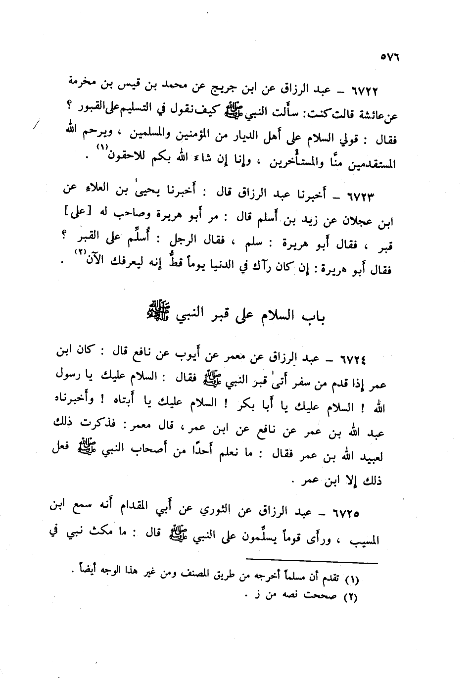 ٦٧٢٤ - عَنْ مَعْمَرٍ، عَنْ أَيُّوبَ، عَنْ نَافِعٍ قَالَ: كَانَ ابْنُ عُمَرَ إِذَا قَدِمَ مِنْ سَفَرٍ أَتَى قَبْرَ النَّبِيِّ صَلَّى اللهُ عَلَيْهِ وَسَلَّمَ فَقَالَ: «السَّلَامُ عَلَيْكَ يَا رَسُولَ اللَّهِ، السَّلَامُ عَلَيْكَ يَا أَبَا بَكْرٍ، السَّلَامُ عَلَيْكَ يَا أَبَتَاهُ»