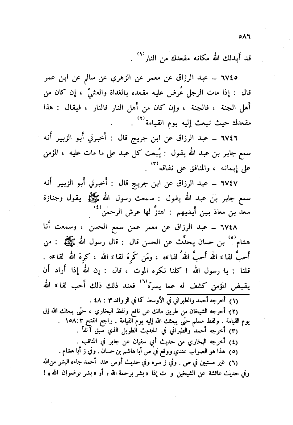 ٦٧٤٦ - عَنِ ابْنِ جُرَيْجٍ قَالَ: أَخْبَرَنِي أَبُو الزُّبَيْرِ، أَنَّهُ سَمِعَ جَابِرَ بْنَ عَبْدِ اللَّهِ يَقُولُ: «يُبْعَثُ كُلُّ عَبْدٍ عَلَى مَا مَاتَ عَلَيْهِ الْمُؤْمِنُ عَلَى إِيمَانِهِ وَالْمُنَافِقُ عَلَى نِفَاقِهِ»