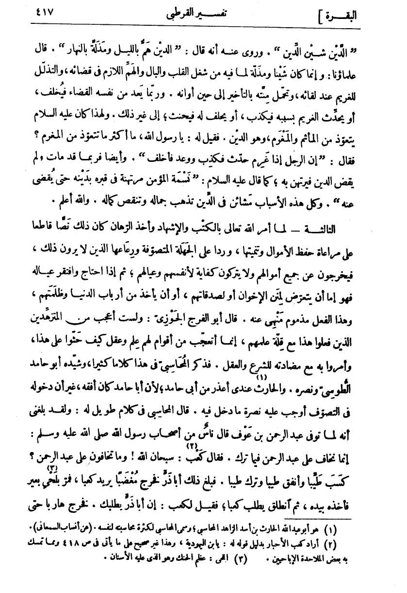 (١). هو أبو عهد الله الحارث بن أسد الزاهد المحاسبي، وسمي المحاسبي لكثرة محاسبته لنفسه. (عن أنساب السمعاني).