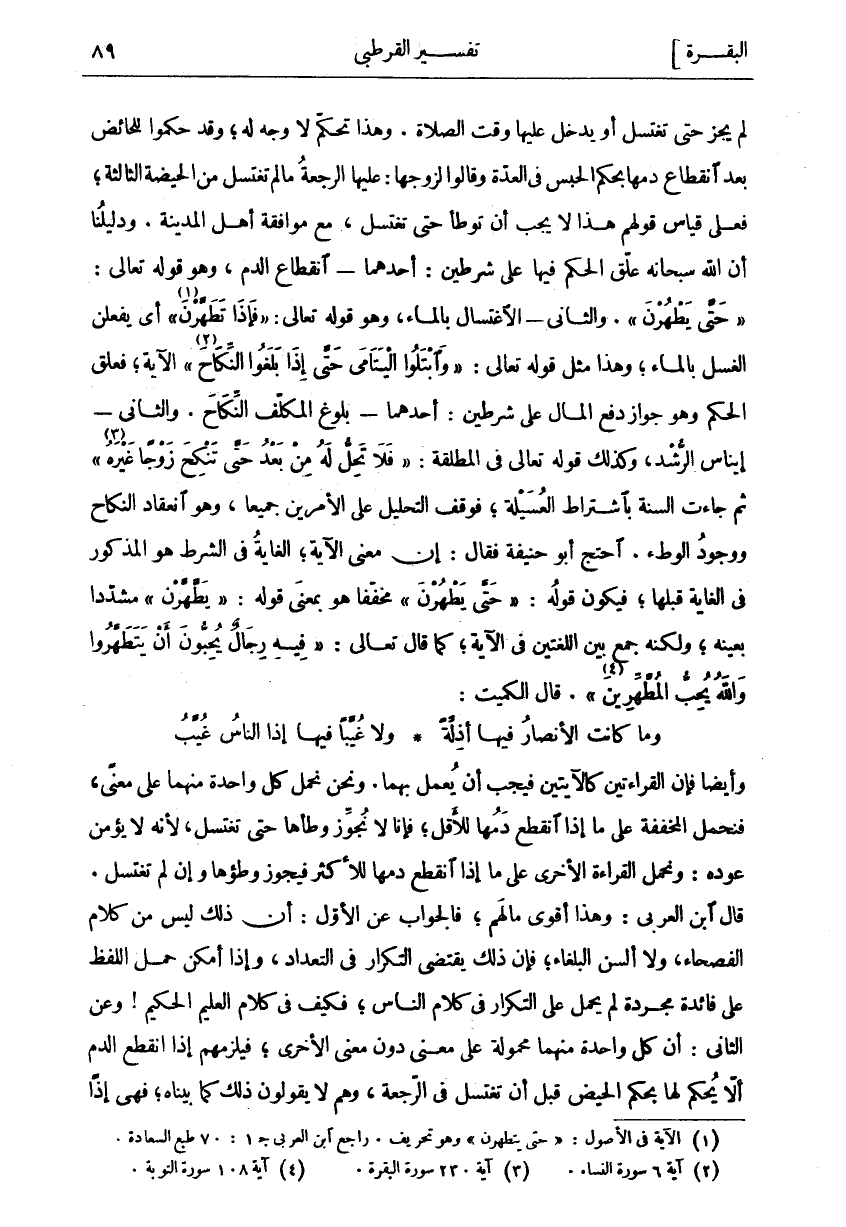 (١). الآية في الأصول:" حتى يتطهرن" وهو تحريف. راجع ابن العربي ج ٧٠: ١ طبع السعادة.