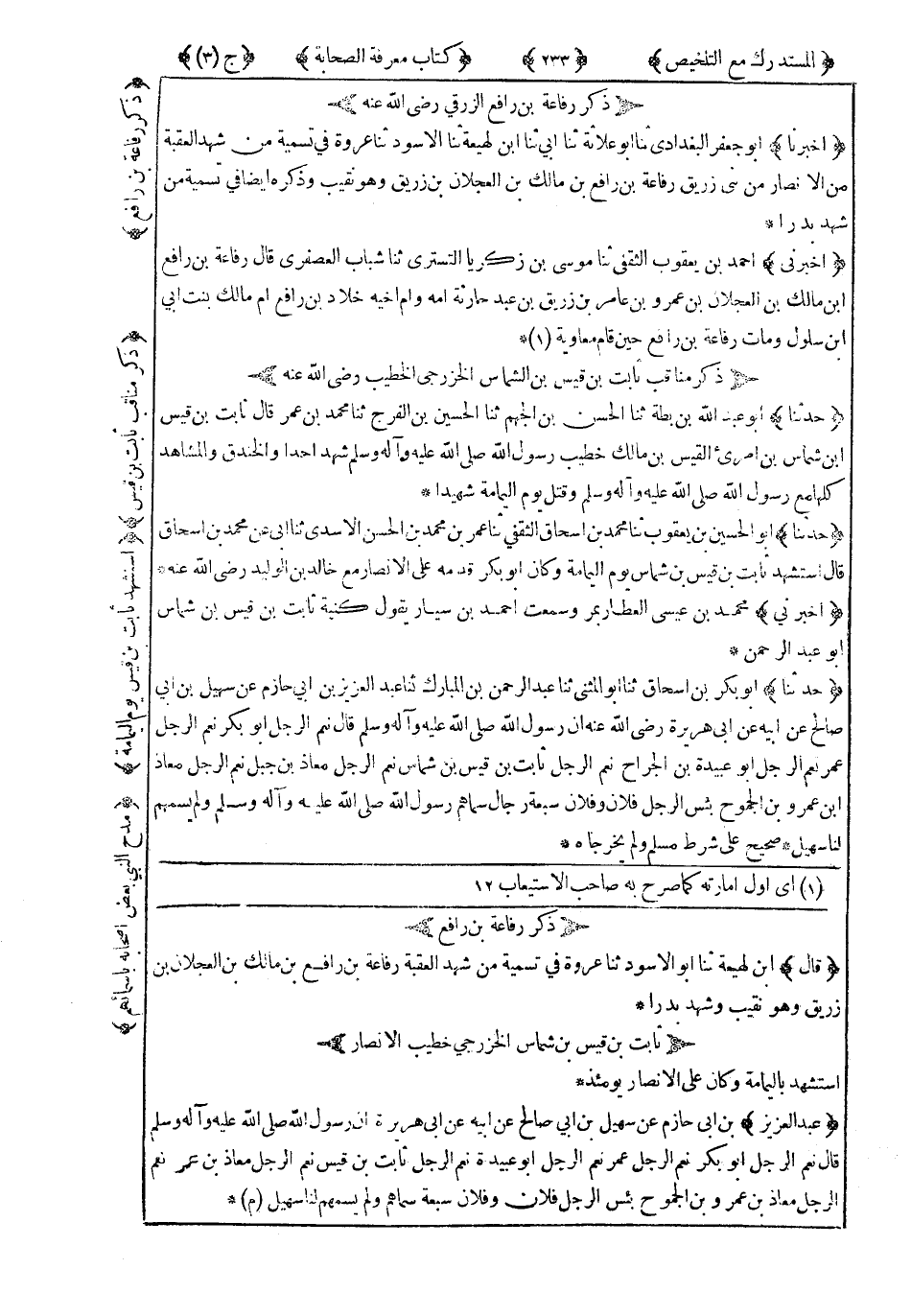 ذِكْرُ رِفَاعَةَ بْنِ رَافِعٍ الزُّرَقِيُّ رَضِيَ اللَّهُ عَنْهُ