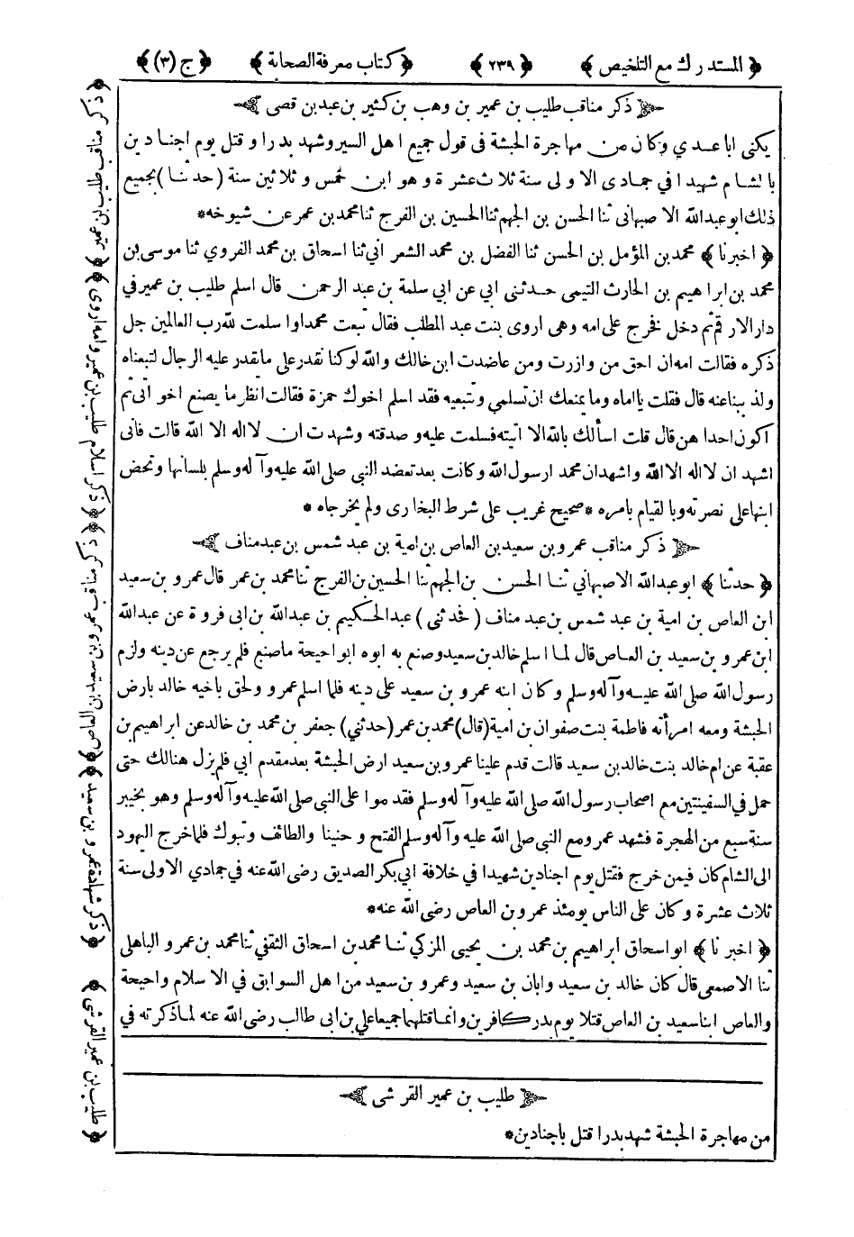 ذِكْرُ مَنَاقِبِ طُلَيْبِ بْنِ عُمَيْرِ بْنِ وَهْبِ بْنِ كَثِيرِ بْنِ عَبْدِ بْنِ قُصَيٍّ