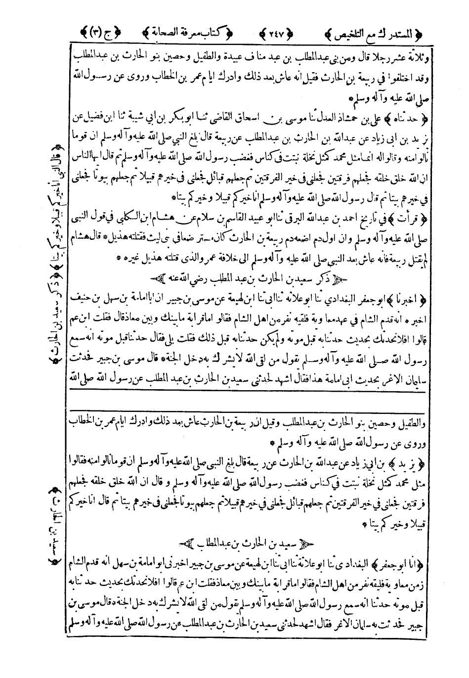 ذِكْرُ سَعِيدِ بْنِ الْحَارِثِ بْنِ عَبْدِ الْمُطَّلِبِ رَضِيَ اللَّهُ عَنْهُ