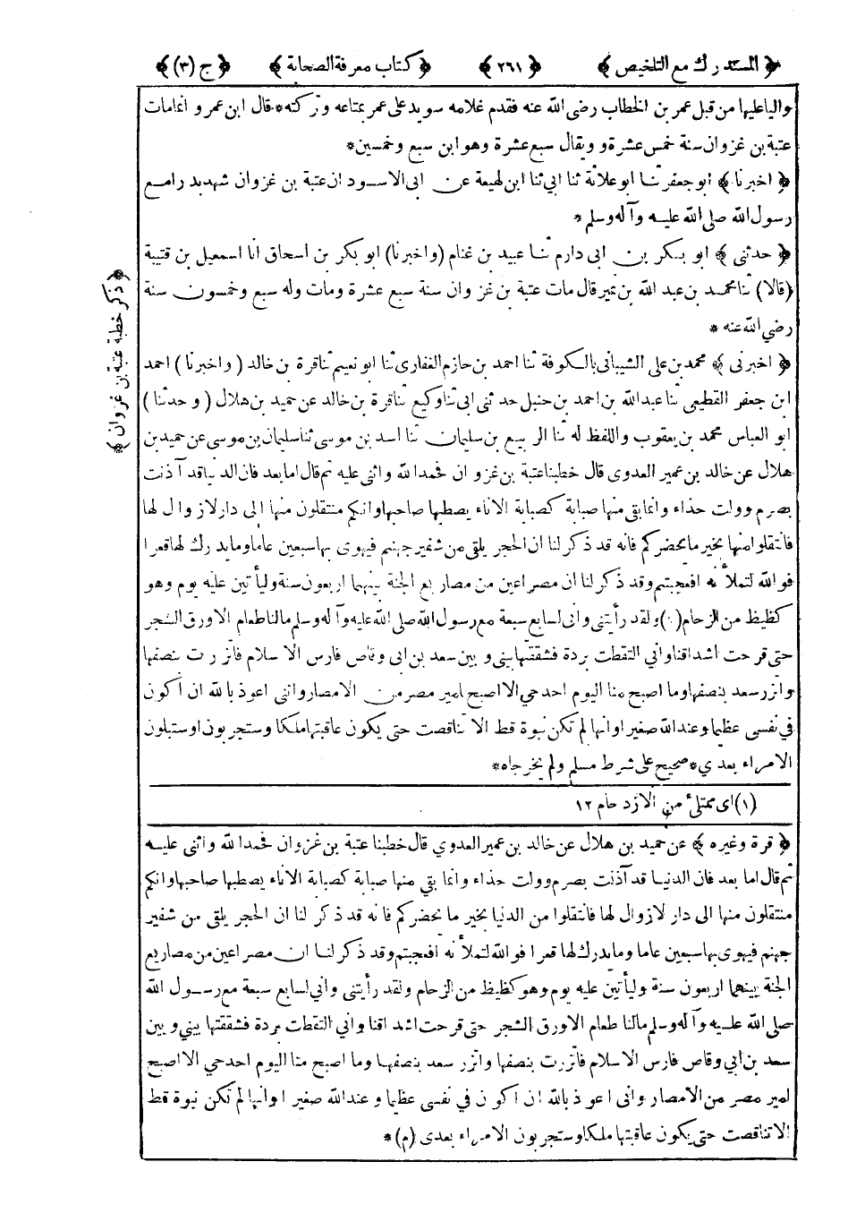 5138- حَدَّثَنِي أَبُو بَكْرِ بْنُ أَبِي دَارِمٍ ، حَدَّثَنَا عُبَيْدُ بْنُ غَنَّامٍ (ح) وَأَخْبَرَنَا أَبُو بَكْرِ بْنُ إِسْحَاقَ ، أَنَا إِسْمَاعِيلُ بْنُ قُتَيْبَةَ ، قَالاَ : حَدَّثَنَا مُحَمَّدُ بْنُ عَبْدِ اللهِ بْنِ نُمَيْرٍ قَالَ : مَاتَ عُتْبَةُ بْنُ غَزْوَانَ سَنَةَ سَبْعَ عَشْرَةَ وَمَاتَ وَلَهُ سَبْعٌ وَخَمْسُونَ سَنَةً رَضِيَ اللَّهُ عَنْهُ.