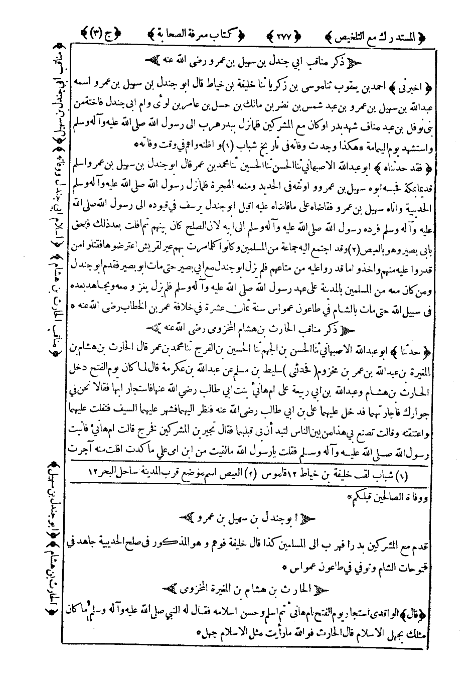 5208- أَخْبَرَنِي أَحْمَدُ بْنُ يَعْقُوبَ ، حَدَّثَنَا مُوسَى بْنُ زَكَرِيَّا ، حَدَّثَنَا خَلِيفَةُ بْنُ خَيَّاطٍ قَالَ : أَبُو جَنْدَلِ بْنُ سُهَيْلِ بْنِ عَمْرٍو اسْمُهُ عَبْدُ اللهِ بْنُ سُهَيْلِ بْنِ عَمْرِو بْنِ عَبْدِ شَمْسِ بْنِ نَضْرِ بْنِ مَالِكِ بْنِ حِسْلِ بْنِ عَامِرِ بْنِ لُؤَيٍّ : وَأُمُّ أَبِي جَنْدَلٍ فَاخِتَةُ مِنْ بَنِي نَوْفَلِ بْنِ عَبْدِ مَنَافٍ ، شَهِدَ بَدْرًا وَكَانَ مَعَ الْمُشْرِكِينَ ، فَلَمَّا نَزَلَ بِبَدْرٍ هَرَبَ إِلَى رَسُولِ اللهِ صَلَّى اللَّهُ عَلَيْهِ وَسَلَّمَ ، وَاسْتُشْهِدَ يَوْمَ الْيَمَامَةِ.