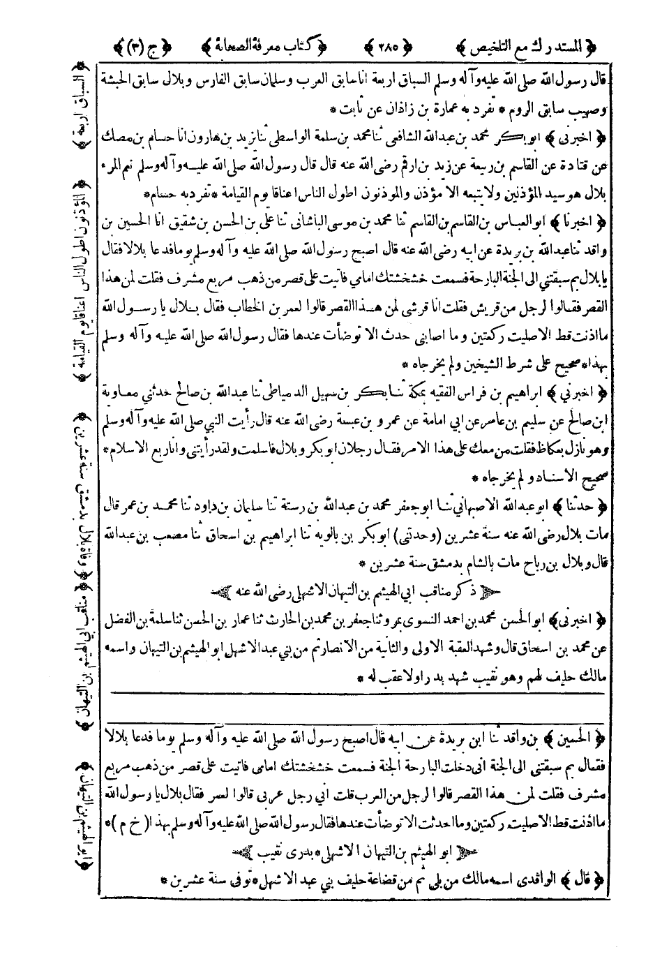 5247- حَدَّثَنَا أَبُو عَبْدِ اللهِ الأَصْبَهَانِيُّ ، حَدَّثَنَا أَبُو جَعْفَرٍ مُحَمَّدُ بْنُ عَبْدِ اللهِ بْنِ رُسْتَةَ ، حَدَّثَنَا سُلَيْمَانُ بْنُ دَاوُدَ ، حَدَّثَنَا مُحَمَّدُ بْنُ عُمَرَ قَالَ : مَاتَ بِلاَلٌ رَضِيَ اللَّهُ عَنْهُ سَنَةَ عِشْرِينَ.