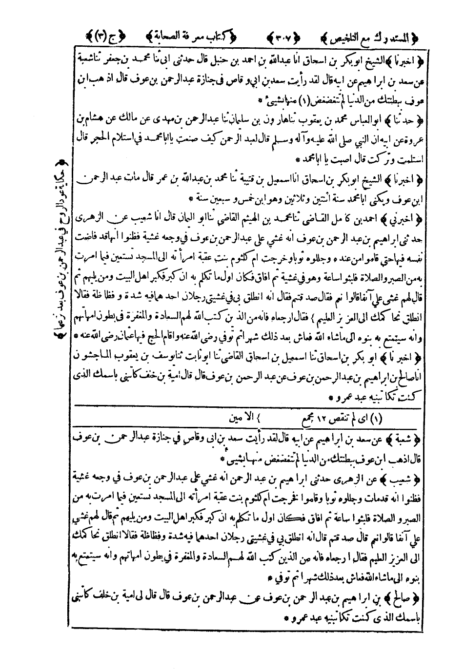 5340- أَخْبَرَنَا الشَّيْخُ أَبُو بَكْرِ بْنُ إِسْحَاقَ ، أَنَا إِسْمَاعِيلُ بْنُ قُتَيْبَةَ ، حَدَّثَنَا مُحَمَّدُ بْنُ عَبْدِ اللهِ بْنِ عُمَرَ ، قَالَ : مَاتَ عَبْدُ الرَّحْمَنِ بْنُ عَوْفٍ ، وَيُكَنَّى أَبَا مُحَمَّدٍ ، سَنَةَ اثْنَتَيْنِ وَثَلاَثِينَ ، وَهُوَ ابْنُ خَمْسٍ وَسَبْعِينَ سَنَةً.