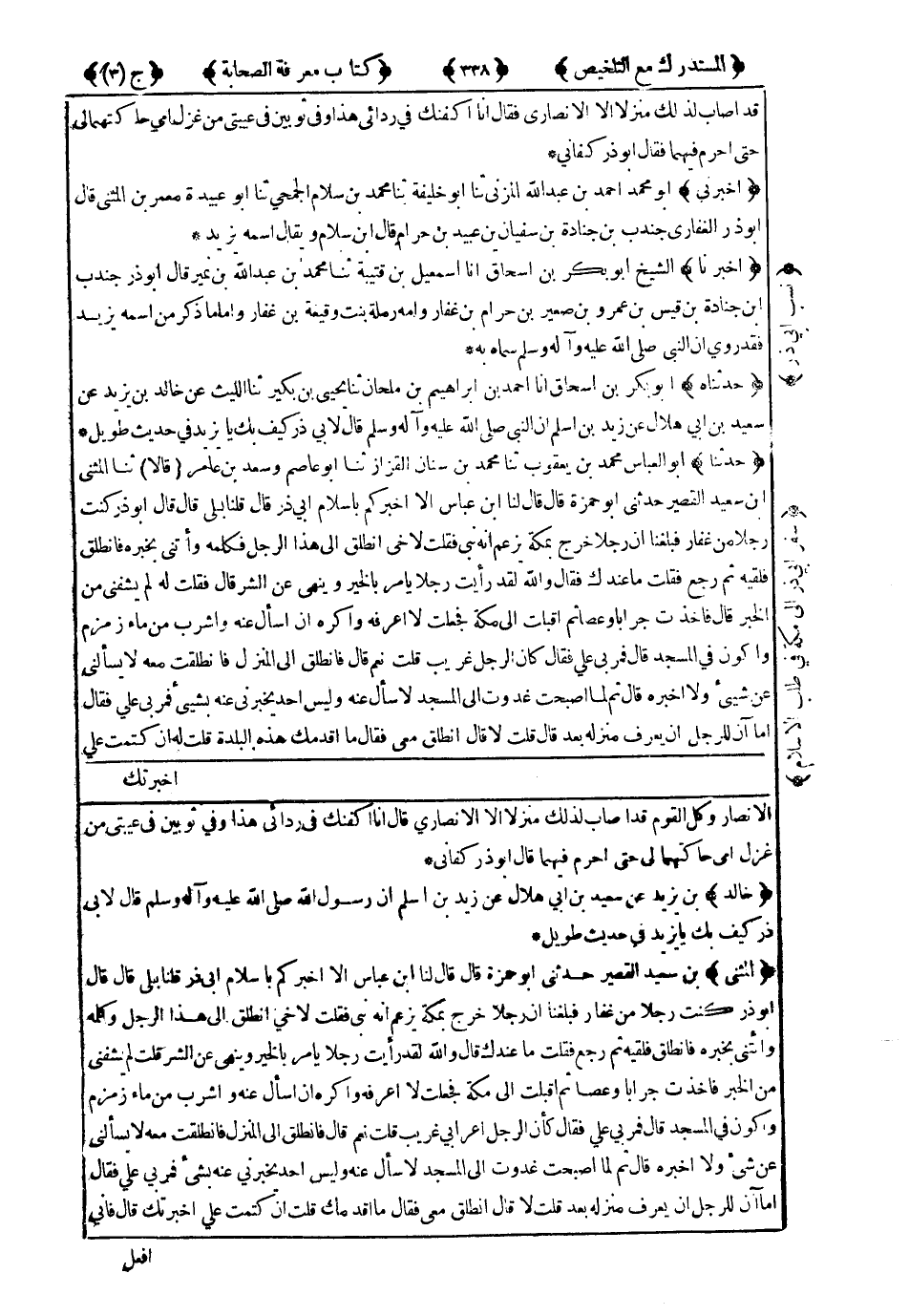 5456- حَدَّثَنَا أَبُو الْعَبَّاسِ مُحَمَّدُ بْنُ يَعْقُوبَ ، حَدَّثَنَا مُحَمَّدُ بْنُ سِنَانٍ الْقَزَّازُ ، حَدَّثَنَا أَبُو عَاصِمٍ ، وَسَعْدُ بْنُ عَامِرٍ ، قَالاَ : حَدَّثَنَا الْمُثَنَّى بْنُ سَعِيدٍ الْقَصِيرُ ، حَدَّثَنِي أَبُو جَمْرَةَ ، قَالَ : قَالَ لَنَا ابْنُ عَبَّاسٍ : أَلاَ أُخْبِرُكُمْ بِإِسْلاَمِ أَبِي ذَرٍّ ؟ قَالَ : قُلْنَا : بَلَى ، قَالَ : قَالَ أَبُو ذَرٍّ : كُنْتُ رَجُلاً مِنْ غِفَارٍ فَبَلَغَنَا أَنَّ رَجُلاً خَرَجَ بِمَكَّةَ يَزْعُمُ أَنَّهُ نَبِيٌّ ، فَقُلْتُ لأَخِي : انْطَلِقْ إِلَى هَذَا الرَّجُلِ فَكَلِّمْهُ وَائْتِنِي بِخَبَرِهِ ، فَانْطَلَقَ ، فَلَقِيَهُ ، ثُمَّ رَجَعَ ، فَقُلْتُ : مَا عِنْدَكَ ؟ فَقَالَ : وَاللَّهِ لَقَدْ رَأَيْتُ رَجُلاً يَأْمُرُ بِالْخَيْرِ وَيَنْهَى عَنِ الشَّرِّ ، قَالَ : فَقُلْتُ لَهُ : لَمْ يَشْفِنِي مِنَ الْخَبَرِ ، قَالَ : فَأَخَذْتُ جِرَابًا وَعَصَا ، ثُمَّ أَقْبَلْتُ إِلَى مَكَّةَ ، فَجَعَلْتُ لاَ أَعْرِفُهُ ، وَأَكْرَهُ أَنْ أَسْأَلَ عَنْهُ ، وَأَشْرَبُ مِنْ مَاءِ زَمْزَمَ ، وَأَكُونُ فِي الْمَسْجِدِ ، قَالَ : فَمَرَّ بِي عَلِيٌّ فَقَالَ : كَأَنَّ الرَّجُلَ غَرِيبٌ ، قُلْتُ : نَعَمْ ، قَالَ : فَانْطَلَقَ إِلَى الْمَنْزِلِ ، فَانْطَلَقْتُ مَعَهُ لاَ يَسْأَلُنِي عَنْ شَيْءٍ ، وَلاَ أُخْبِرُهُ ، قَالَ : ثُمَّ لَمَّا أَصْبَحْتُ غَدَوْتُ إِلَى الْمَسْجِدِ لأَسْأَلَ عَنْهُ ، وَلَيْسَ أَحَدٌ يُخْبِرُنِي عَنْهُ بِشَيْءٍ ، فَمَرَّ بِي عَلِيٌّ ، فَقَالَ : أَمَا إِنَّ لِلرَّجُلِ أَنْ يَعْرِفَ مَنْزِلَهُ بَعْدُ ؟ قَالَ : قُلْتُ : لاَ ، قَالَ : انْطَلِقْ مَعِي ، فَقَالَ : مَا أَقْدَمَكَ هَذِهِ الْبَلْدَةَ ؟ قُلْتُ لَهُ : إِنْ كَتَمْتَ عَلَيَّ أَخْبَرْتُكَ ؟
