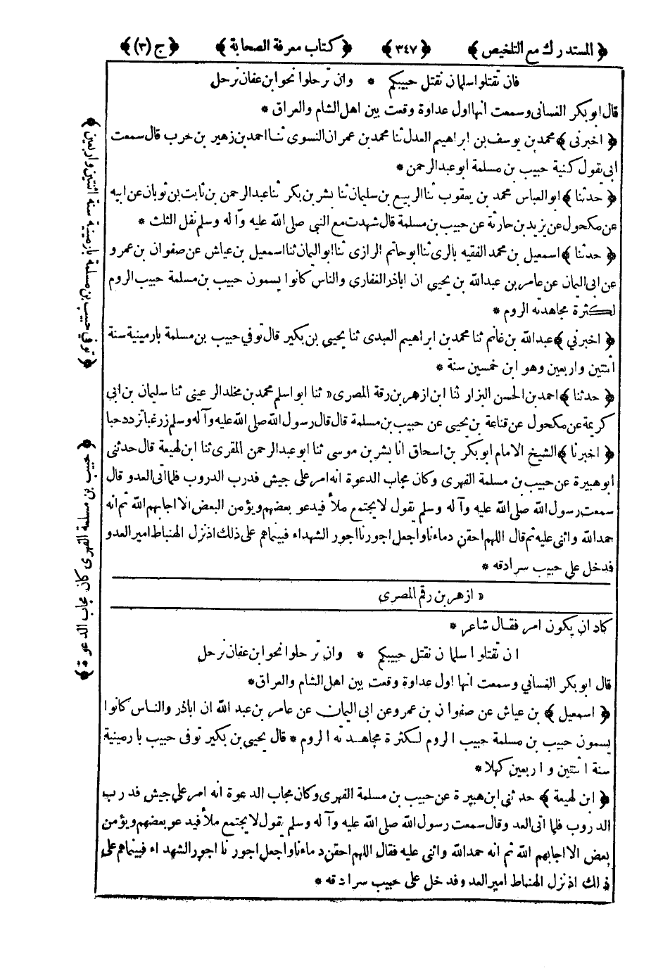 5473- أَخْبَرَنِي مُحَمَّدُ بْنُ يُوسُفَ بْنِ إِبْرَاهِيمَ الْعَدْلُ ، حَدَّثَنَا مُحَمَّدُ بْنُ عِمْرَانَ النَّسَوِيُّ ، حَدَّثَنَا أَحْمَدُ بْنُ زُهَيْرِ بْنِ حَرْبٍ ، قَالَ : سَمِعْتُ أَبِي يَقُولُ : كُنْيَةُ حَبِيبِ بْنِ مَسْلَمَةَ : أَبُو عَبْدِ الرَّحْمَنِ.