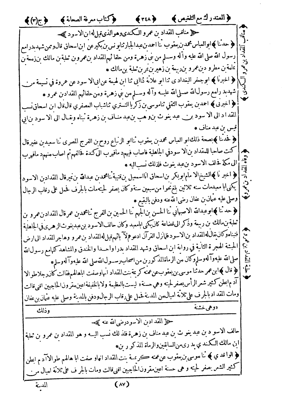 مَنَاقِبُ الْمِقْدَادِ بْنِ عَمْرٍو الْكِنْدِيُّ وَهُوَ الَّذِي قِيلَ لَهُ ابْنُ الأَسْوَدِ