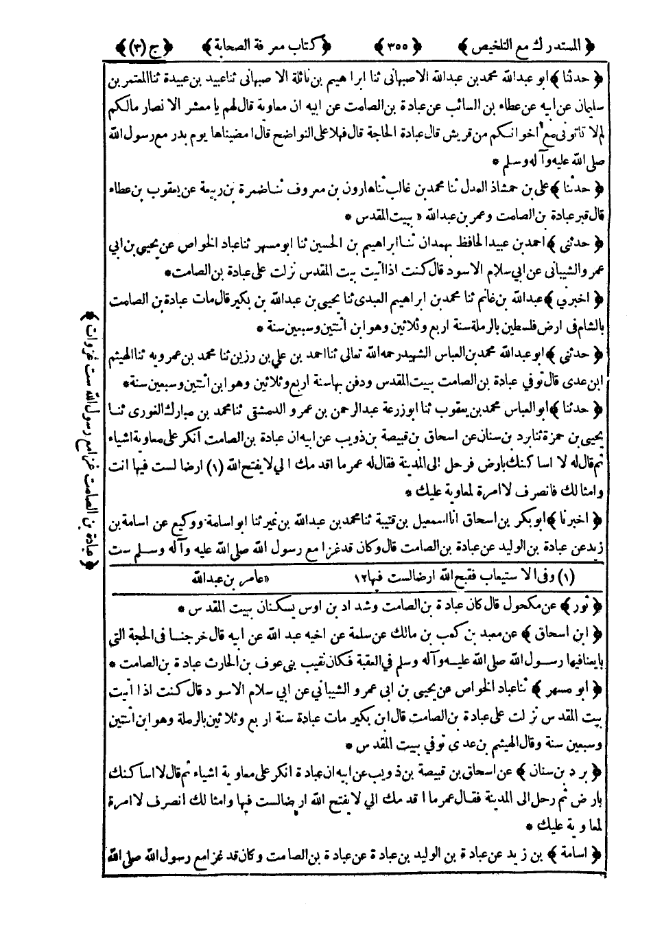 5522- حَدَّثَنِي أَبُو عَبْدِ اللهِ مُحَمَّدُ بْنُ الْعَبَّاسِ الشَّهِيدُ رَحِمَهُ اللَّهُ تَعَالَى حَدَّثَنَا أَحْمَدُ بْنُ عَلِيِّ بْنِ رَزِينٍ ، حَدَّثَنَا مُحَمَّدُ بْنُ عَمْرَوَيْهِ ، حَدَّثَنَا الْهَيْثَمُ بْنُ عَدِيٍّ قَالَ : تُوُفِّيَ عُبَادَةُ بْنُ الصَّامِتِ بِبَيْتِ الْمَقْدِسِ ، وَدُفِنَ بِهَا سَنَةَ أَرْبَعٍ وَثَلاَثِينَ وَهُوَ ابْنُ اثْنَتَيْنِ وَسَبْعِينَ سَنَةً.