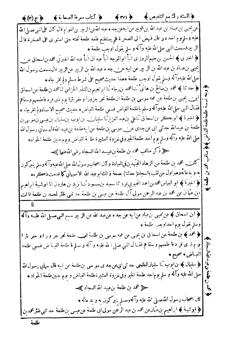 ذِكْرُ مَنَاقِبِ مُحَمَّدِ بْنِ طَلْحَةَ بْنِ عُبَيْدِ اللهِ السَّجَّادِ رَضِيَ اللَّهُ عَنْهُمَا