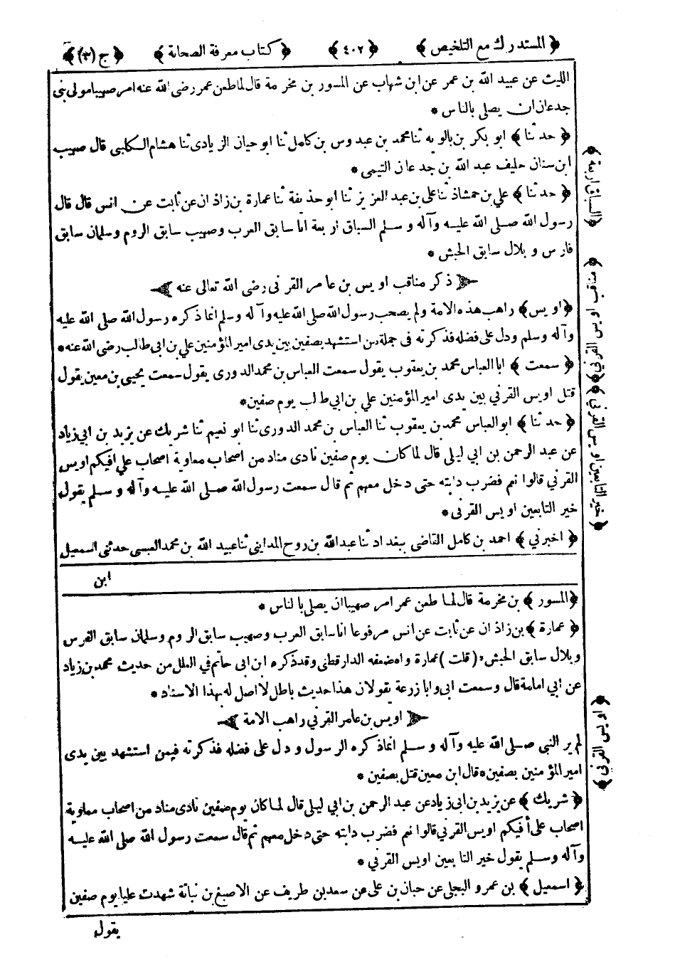 أُوَيْسٌ رَاهِبُ هَذِهِ الآمَّةِ ، وَلَمْ يَصْحَبْ رَسُولَ اللهِ صَلَّى اللَّهُ عَلَيْهِ وَسَلَّمَ ، إِنَّمَا ذَكَرَهُ رَسُولُ اللهِ صَلَّى اللَّهُ عَلَيْهِ وَسَلَّمَ وَدَلَّ عَلَى فَضْلِهِ ، فَذَكَرْتُهُ فِي جُمْلَةِ مَنِ اسْتُشْهِدَ بِصِفِّينَ بَيْنَ يَدَيْ أَمِيرِ الْمُؤْمِنِينَ عَلِيِّ بْنِ أَبِي طَالِبٍ رَضِيَ اللَّهُ عَنْهُ.
