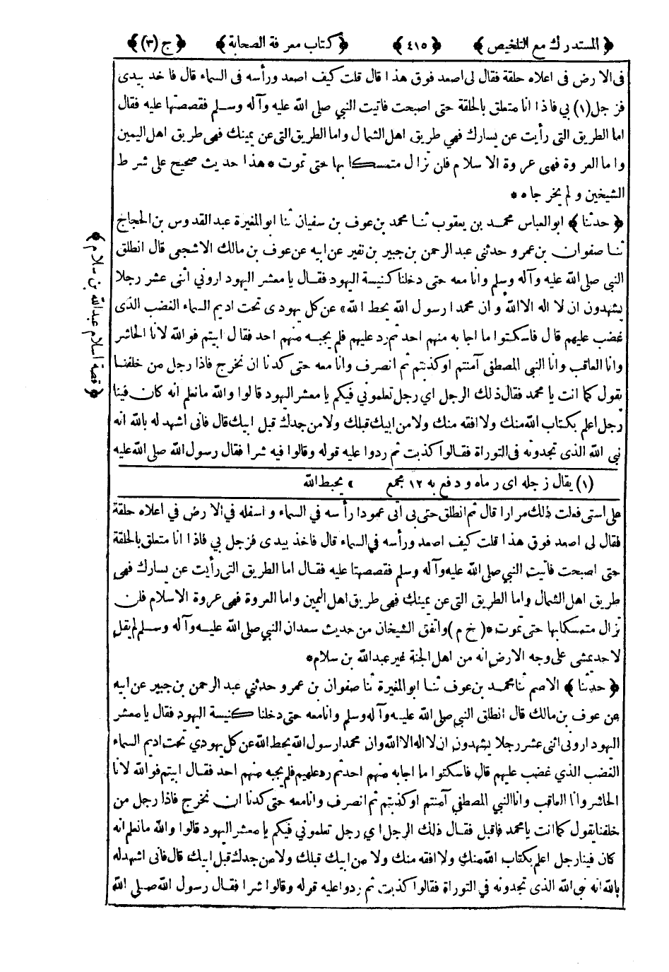 صَحِيحٌ عَلَى شَرْطِ الشَّيْخَيْنِ ، وَلَمْ يُخَرِّجَاهُ ، إِنَّمَا اتَّفَقَا عَلَى حَدِيثِ حُمَيْدٍ ، عَنْ أَنَسٍ أَيُّ رَجُلٍ عَبْدُ اللهِ بْنُ سَلاَمٍ فِيكُمْ مُخْتَصَرًا.