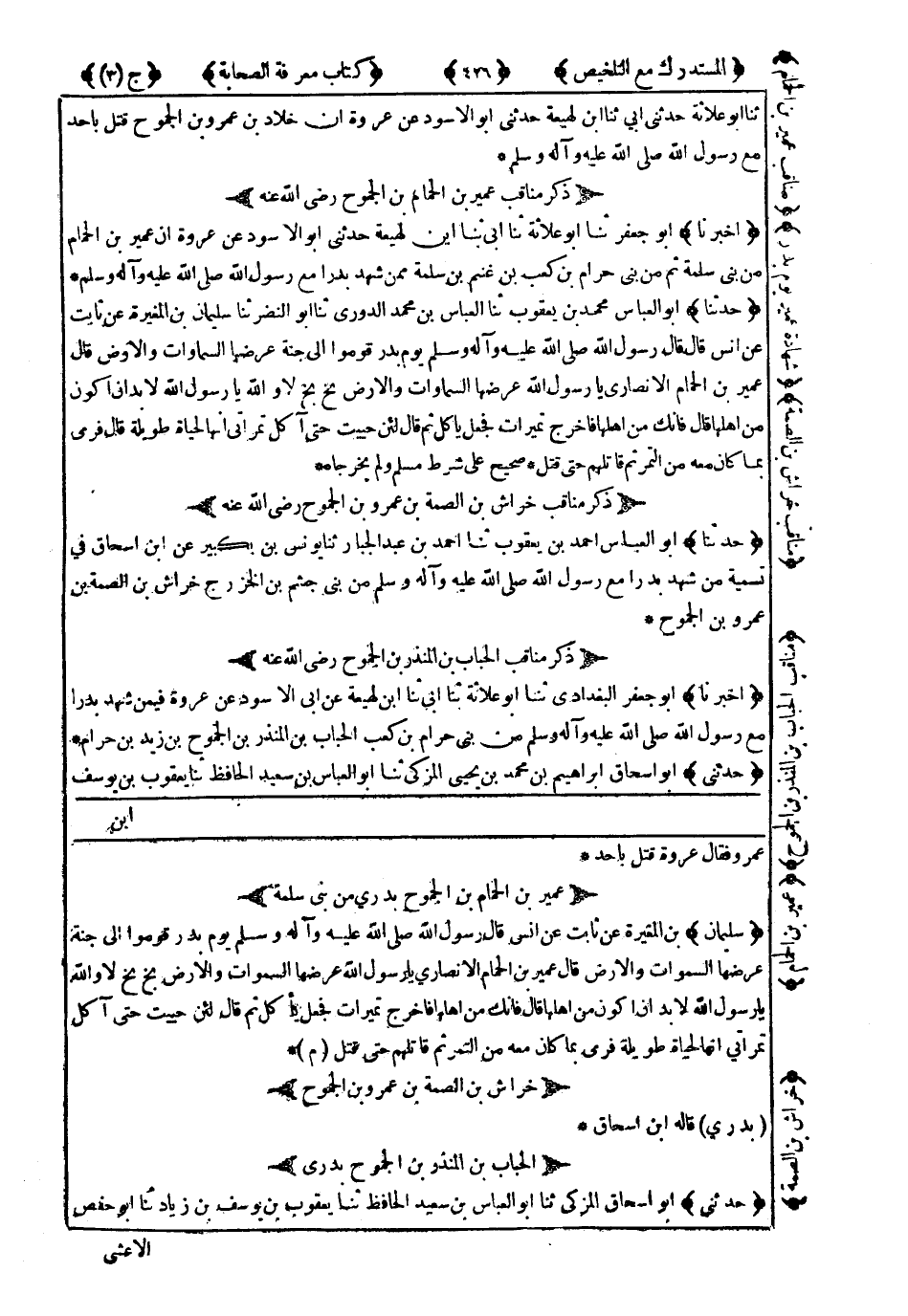 5800- أَخْبَرَنَا أَبُو جَعْفَرٍ الْبَغْدَادِيُّ ، حَدَّثَنَا أَبُو عُلاَثَةَ ، حَدَّثَنَا أَبِي ، حَدَّثَنَا ابْنُ لَهِيعَةَ ، عَنْ أَبِي الأَسْوَدِ ، عَنْ عُرْوَةَ ، فِيمَنْ شَهِدَ بَدْرًا مَعَ رَسُولِ اللهِ صَلَّى اللَّهُ عَلَيْهِ وَسَلَّمَ مِنْ بَنِي حَرَامِ بْنِ كَعْبِ الْحُبَابِ بْنِ الْمُنْذِرِ بْنِ الْجَمُوحِ بْنِ زَيْدِ بْنِ حَرَامٍ.