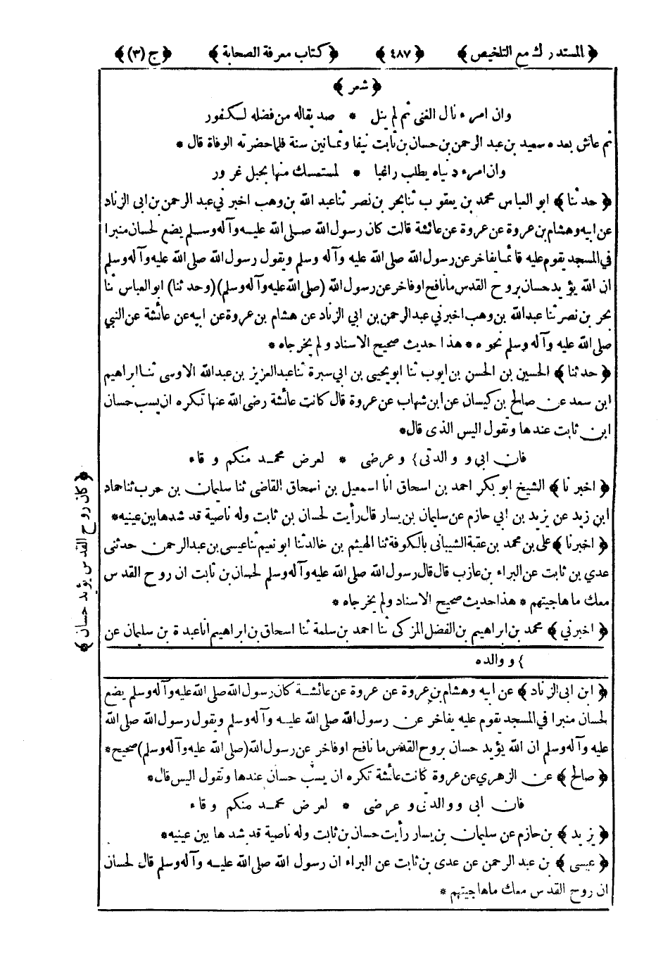 هَذَا حَدِيثٌ صَحِيحٌ عَلَى شَرْطِ الشَّيْخَيْنِ ، وَلَمْ يُخَرِّجَاهُ هَكَذَا إِنَّمَا أَخْرَجَهُ مُسْلِمٌ بِطُولِهِ مِنْ حَدِيثِ اللَّيْثِ ، عَنْ خَالِدِ بْنِ يَزِيدَ ، وَذَكَرَ فِيهِ الْقَصِيدَةَ بِطُولِهَا :